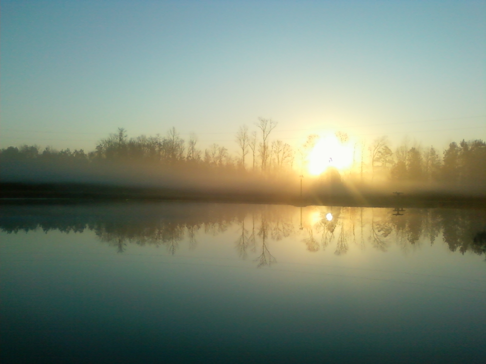 Every morning I walk to our pond with our puppies – I call them puppies, but they are now a year old and weigh 60 and 80 pounds (Scarlett and Bo). Anyway, the peace that surrounds me is so incredible. Now that we live way out in the country on 20 acres, there is no sound of traffic – just nature and God’s voice – one in the same, I feel. I watch the spiders spin their webs on the cattails as the sun slowly comes over the horizon. This time of year, the mist or fog is coming off the pond. It is still and reflects the area surrounding it – I see a mirror image of the sky, clouds and trees. It makes me realize that when our minds are still, we can better reflect what God wants for us. But when we are noisy and “rippled” like when the wind blows, the reflection gets distorted and we can no longer see (or hear) with clarity like in the stillness, paying attention to the little things, because, after all, everything is significant, no matter how small.