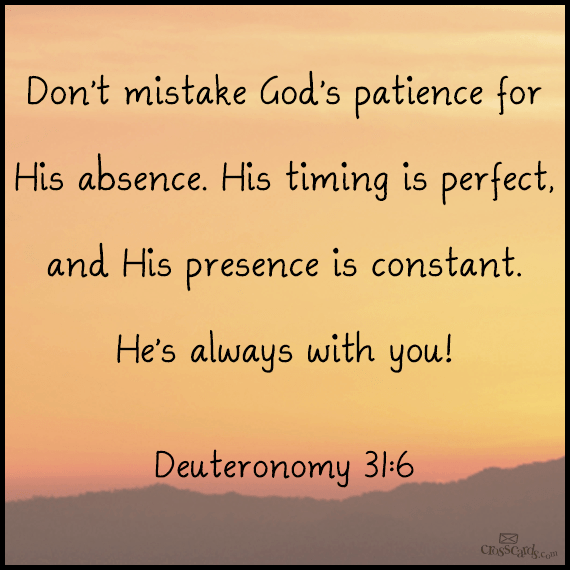 Deuteronomy 31:6 states ” ‘Be strong and of a good courage, do not fear nor be afraid of them; for the LORD your God, He is the One who goes with you. He will not leave you nor forsake you.’ “(NKJV)
