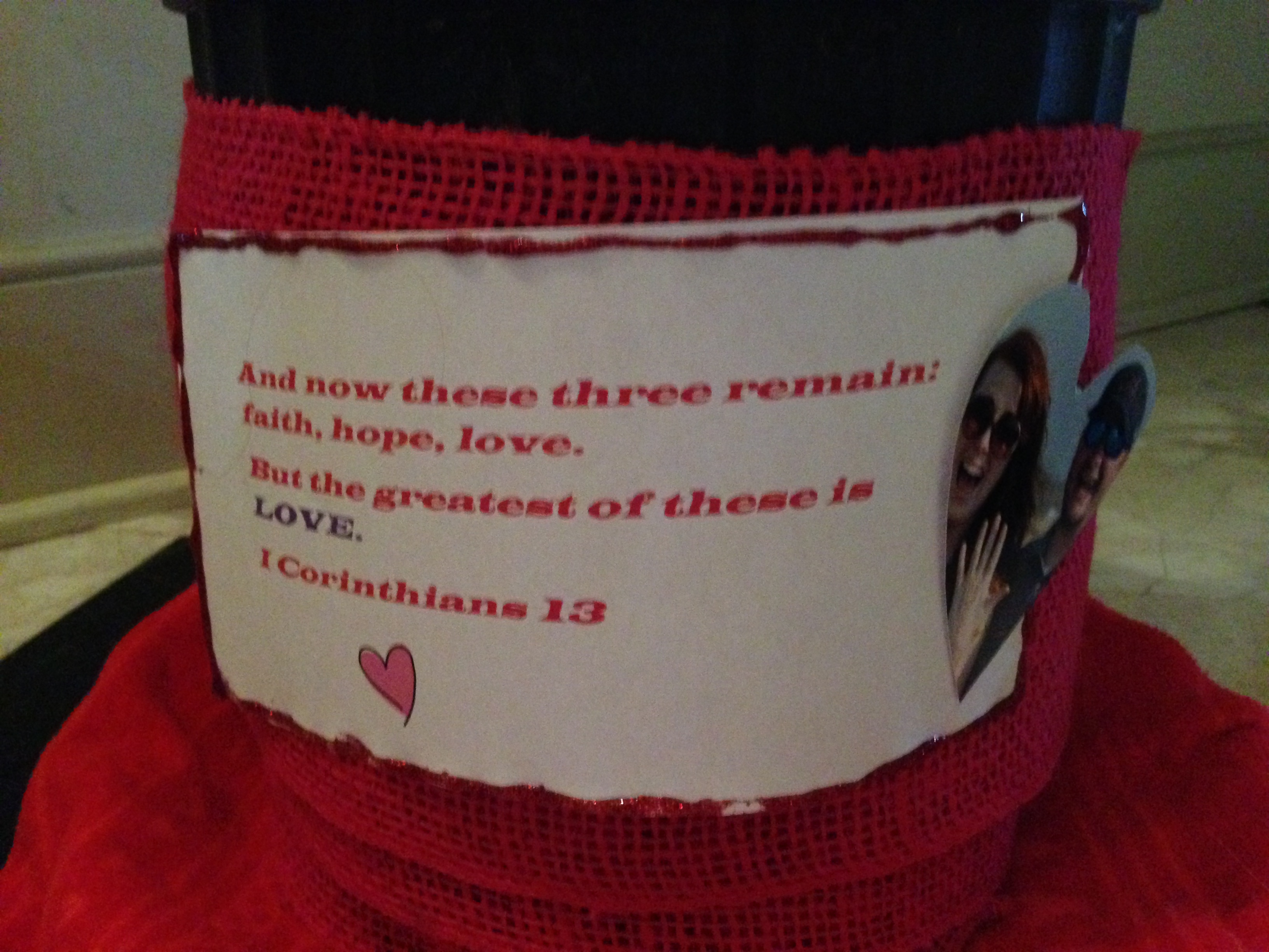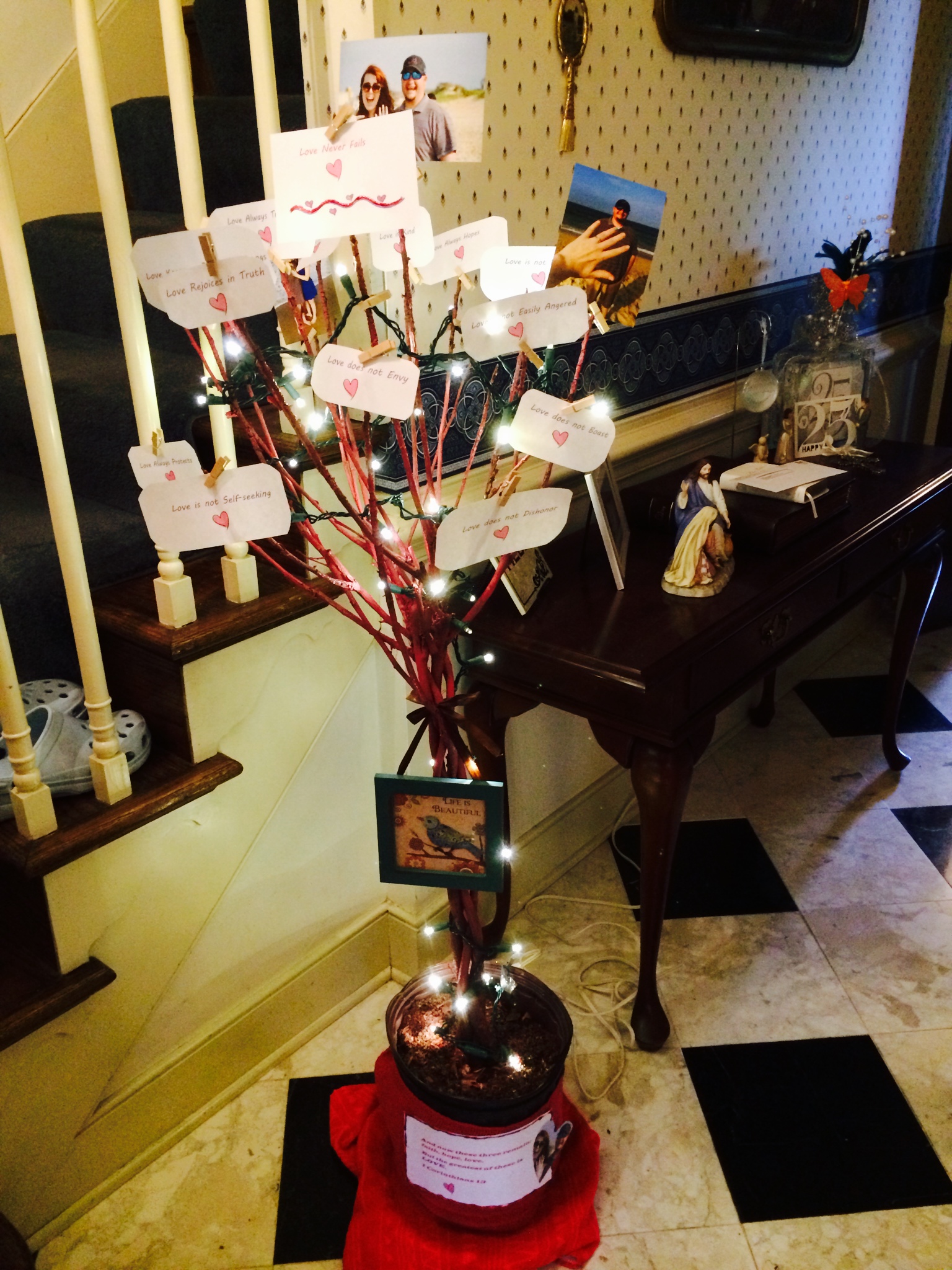 I enjoyed taking a dead flower/bush and bringing it to life. I spray painted it and added lights, their favorite Bible verse with some of their pictures.