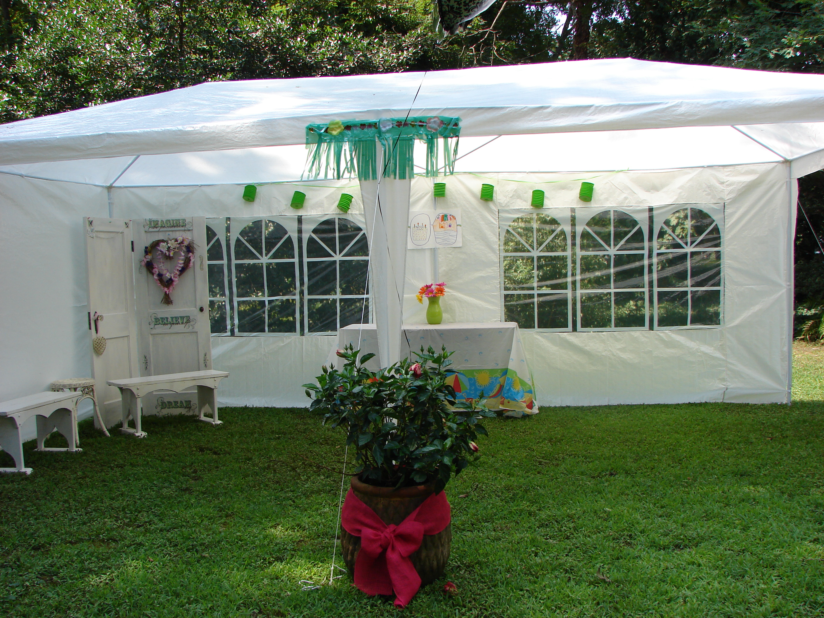 Shopping for food was done prior to the weekend and yard work was done over weeks, and days leading up to the event. Interestingly, we had one of those mosquito bug spray folks come out–and it worked! I knew we had a huge crowd coming and wanted the yard to be mosquito free! We did that two days prior. Grass has to be cut and no rain. We purposefully scheduled the party for Sunday evening from 4 – 8:00, so we could cook food and do the last-minute things that can only be done the day of. About a year or so prior this event, I found a tent at a local drug store for only 20.00 dollars–it was that crazy sale of 75 percent off. It’s just a mom’s intuition to purchase things like this and hold on to them.