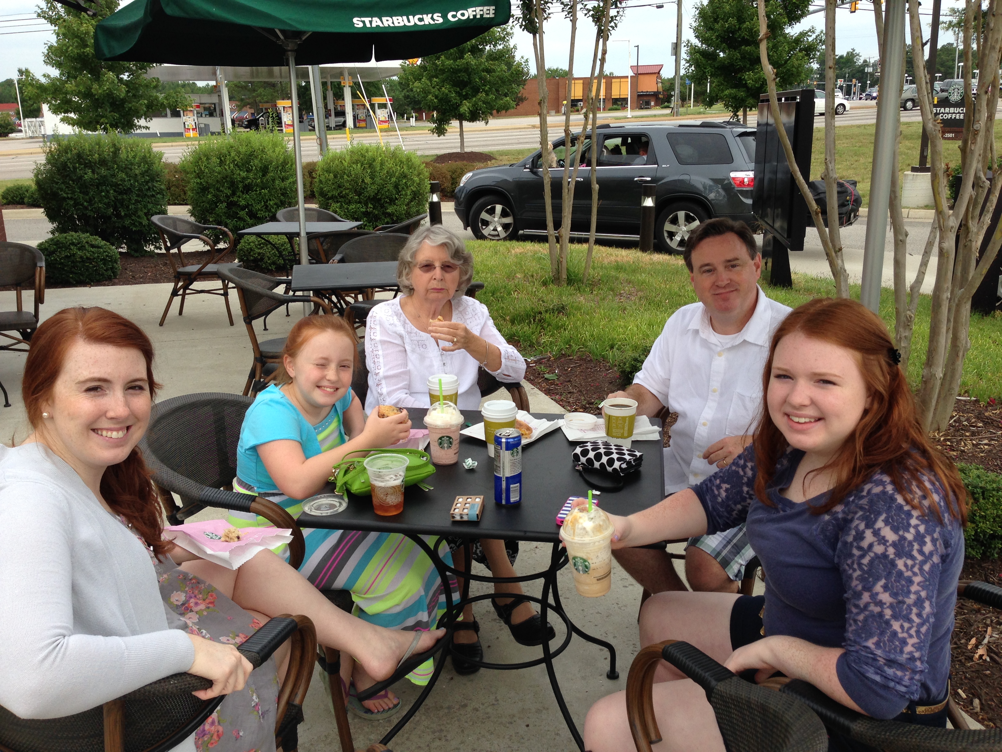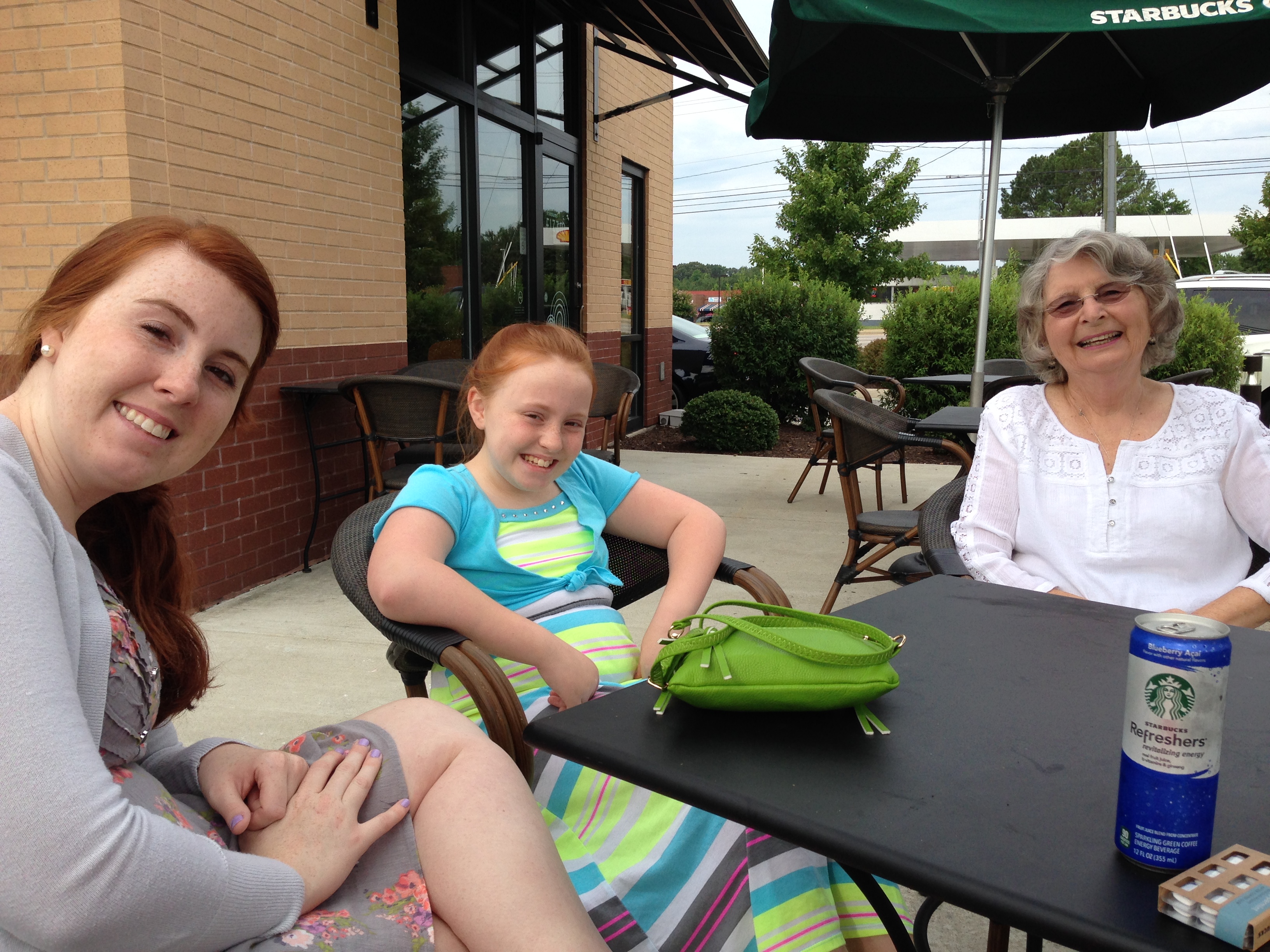Before heading there, we needed some caffeine from Starbucks. Grandma accidentally got the coffee with an extra shot of espresso! She laughed and said, “I might just try on a dress today, too!”