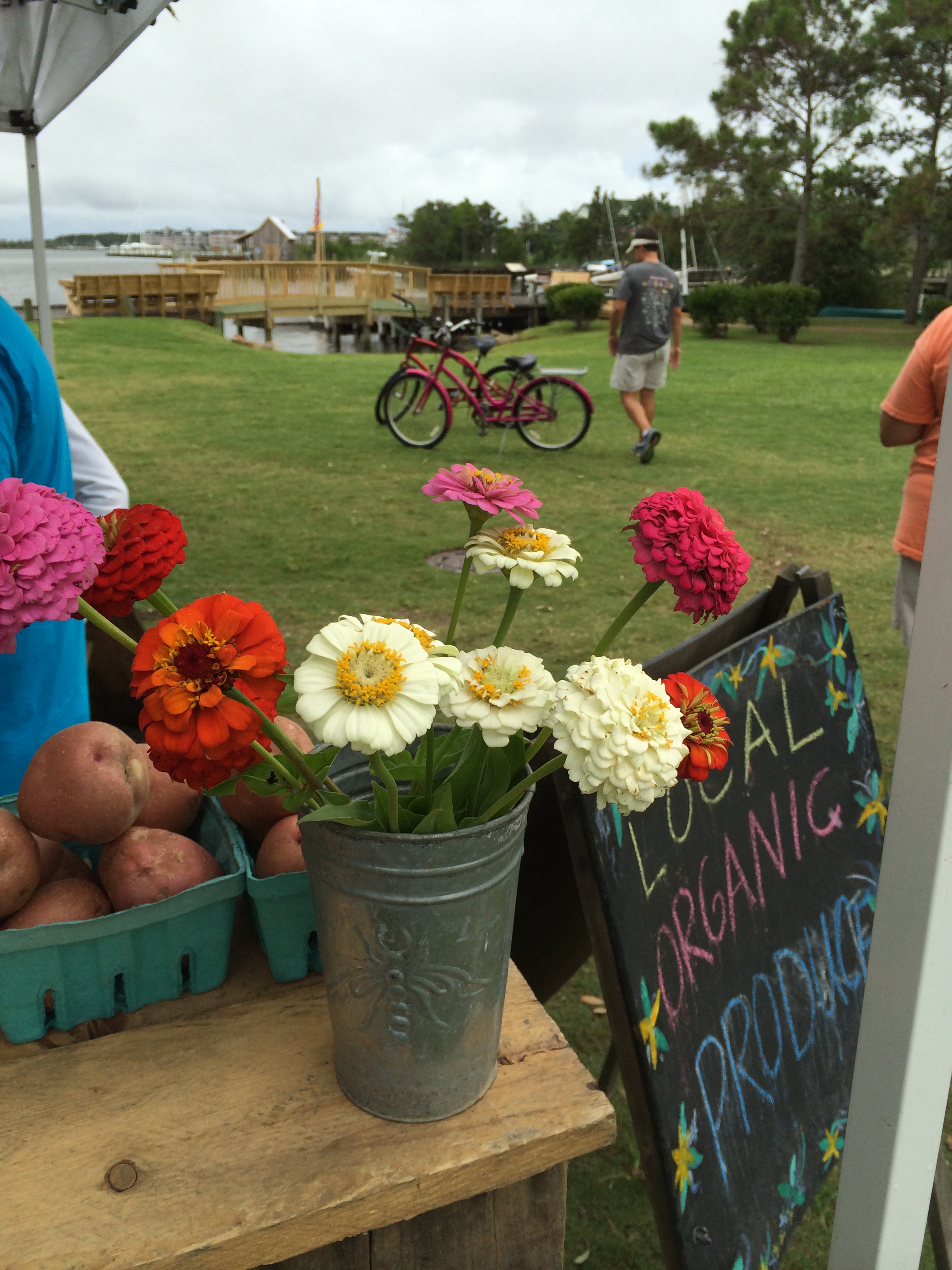 On Saturday, Manteo has a Farmer’s Market from about 9:00 – 12:00. We enjoyed the unique artists, vegetables, and an artist who creates necklaces out of sea glass from Haiti to support her daughter’s orphanage.