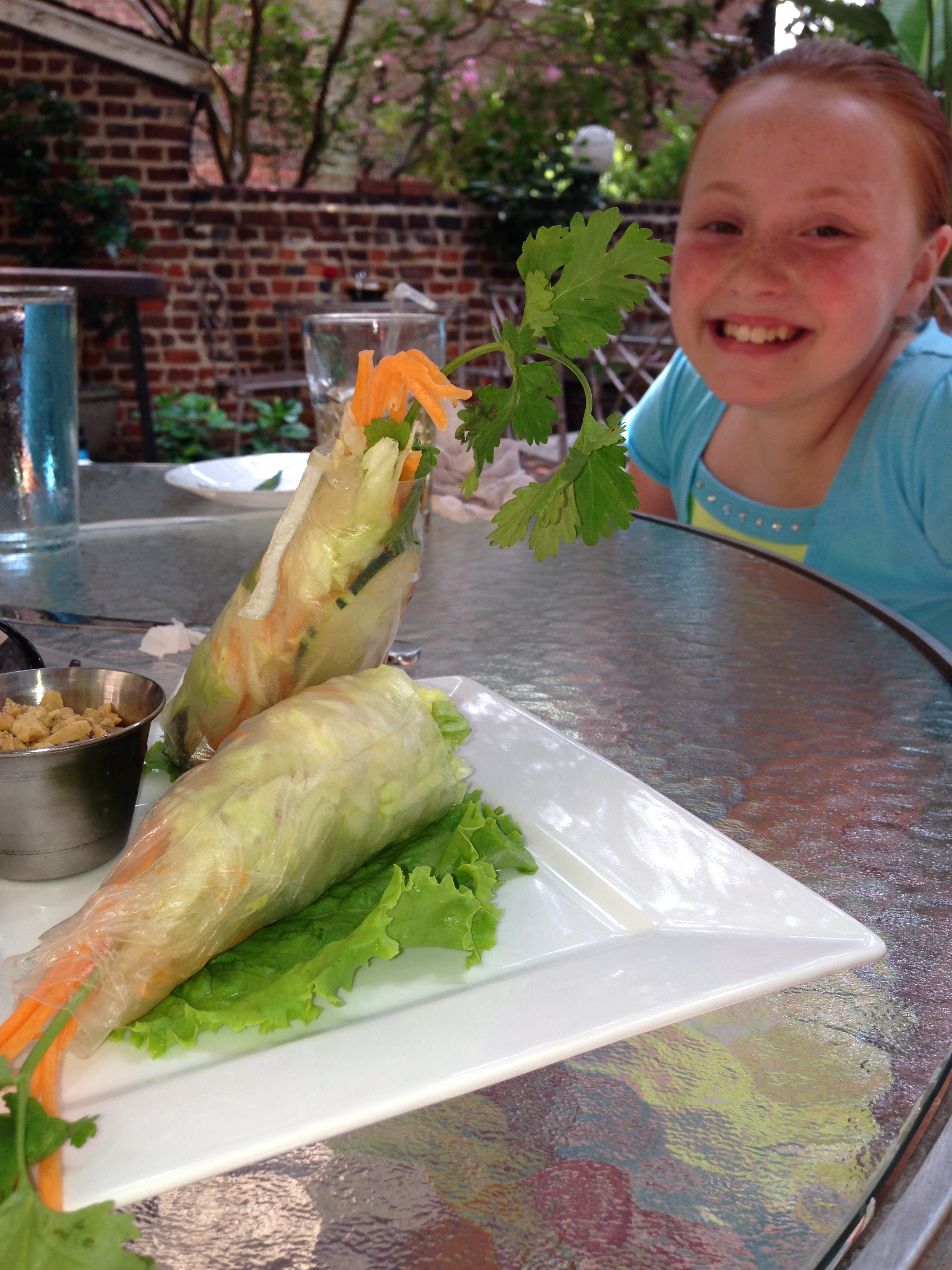 The service was friendly and accommodating. They have an “Out of Thailand” menu for children, but also will accommodate a menu item to suit your picky eater. For example, sauces on the side, noodles “by themselves” (that’s what my youngest calls it), and the old stand by of french fries are available. With some dishes, you can ask for a different “level” of spice!