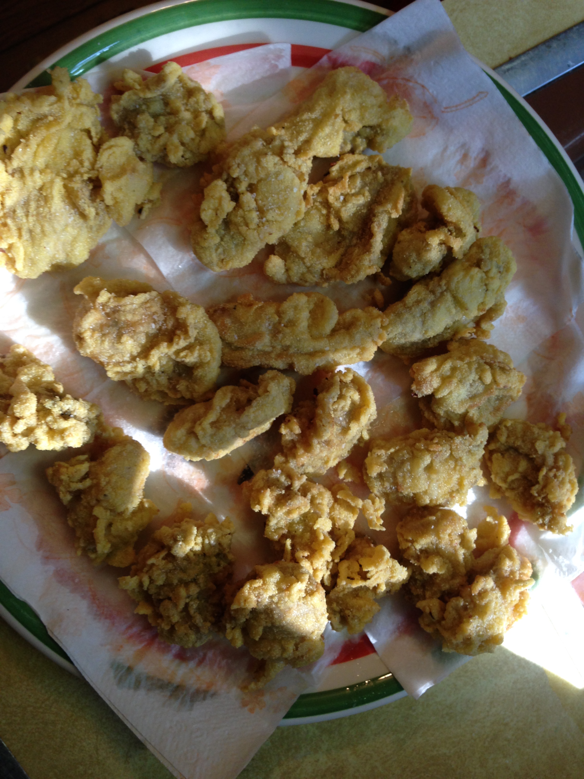 - 48 freshly shucked oysters, drained (We could not afford 48 oysters. We purchased the usual jar of oysters already shucked for you. One jar was about 14.00 dollars. Hence the reason we only made four sandwiches!)