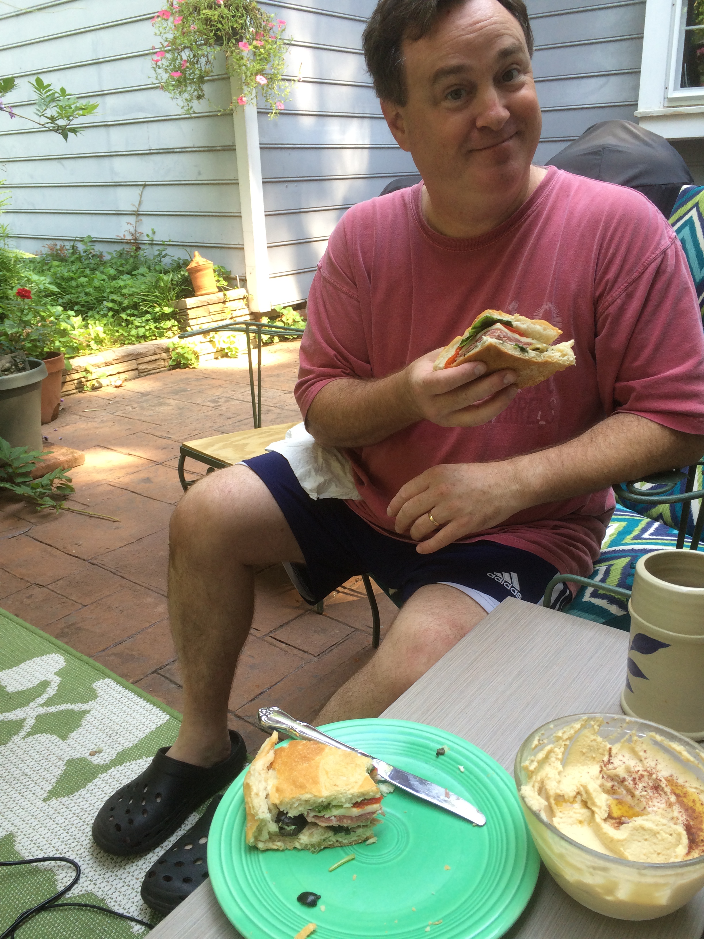 We put the leftovers in the refrigerator and enjoyed the next morning as a brunch item with homemade hummus on the patio. We found two little chipmunks playing. One was peeking his head out of a flower-pot. My husband reminded me that his favorite food is the sandwich. I was speaking his love language! There will be more interesting sandwich recipes to come in the future of this blog post! : )