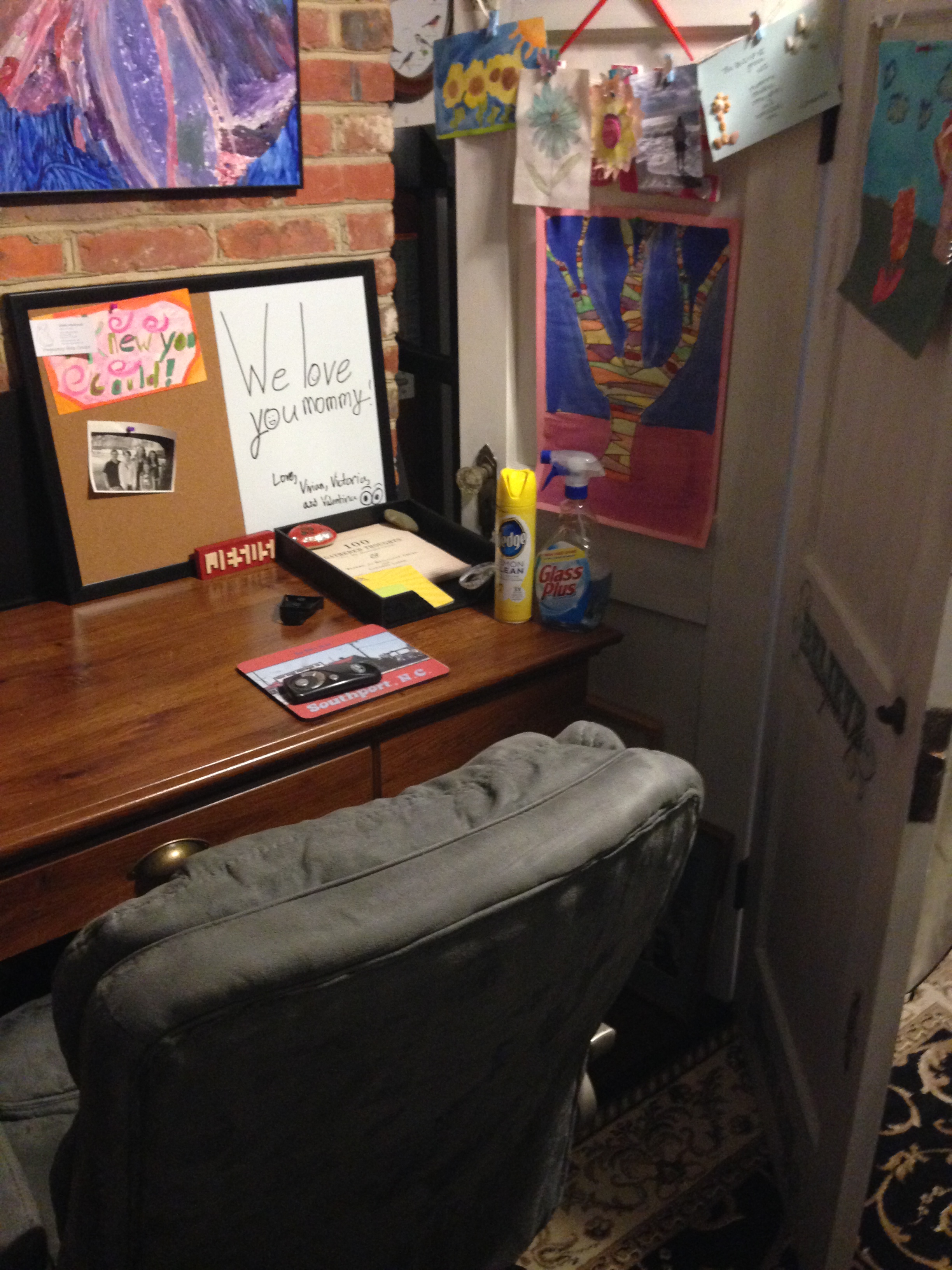 I would like to take the wallpaper down and paint. I’m not sure. I need to think of a better, more creative, decorative chair for my desk. We are removing the hope chest for more space. That was done today, and sweet Vivian wanted this for her room. My children were rating me on my hoarding tendencies.