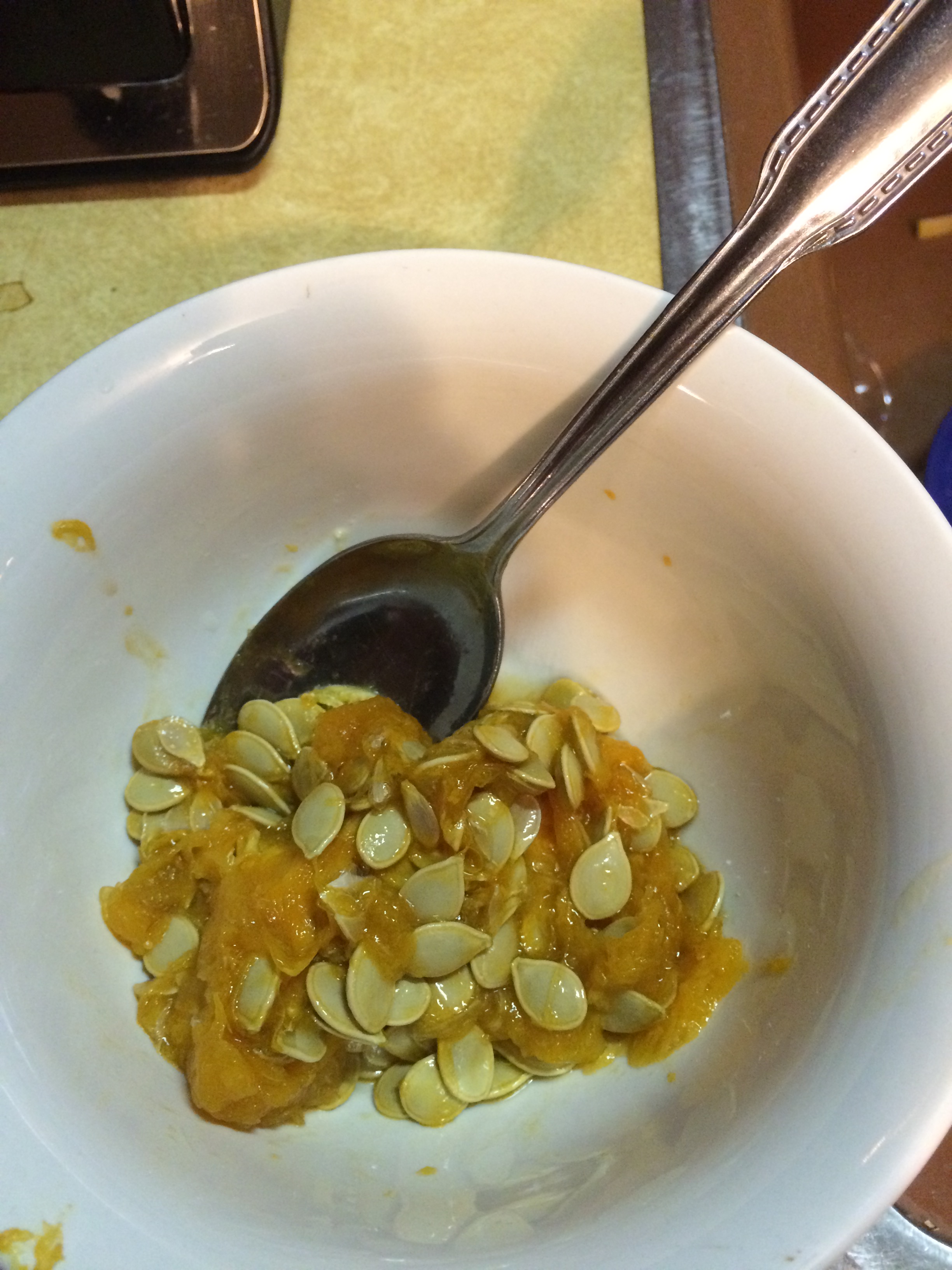 Cut the acorn squash in half. Remove the soft center stringy pulp and seeds. Set the seeds aside to be toasted later.