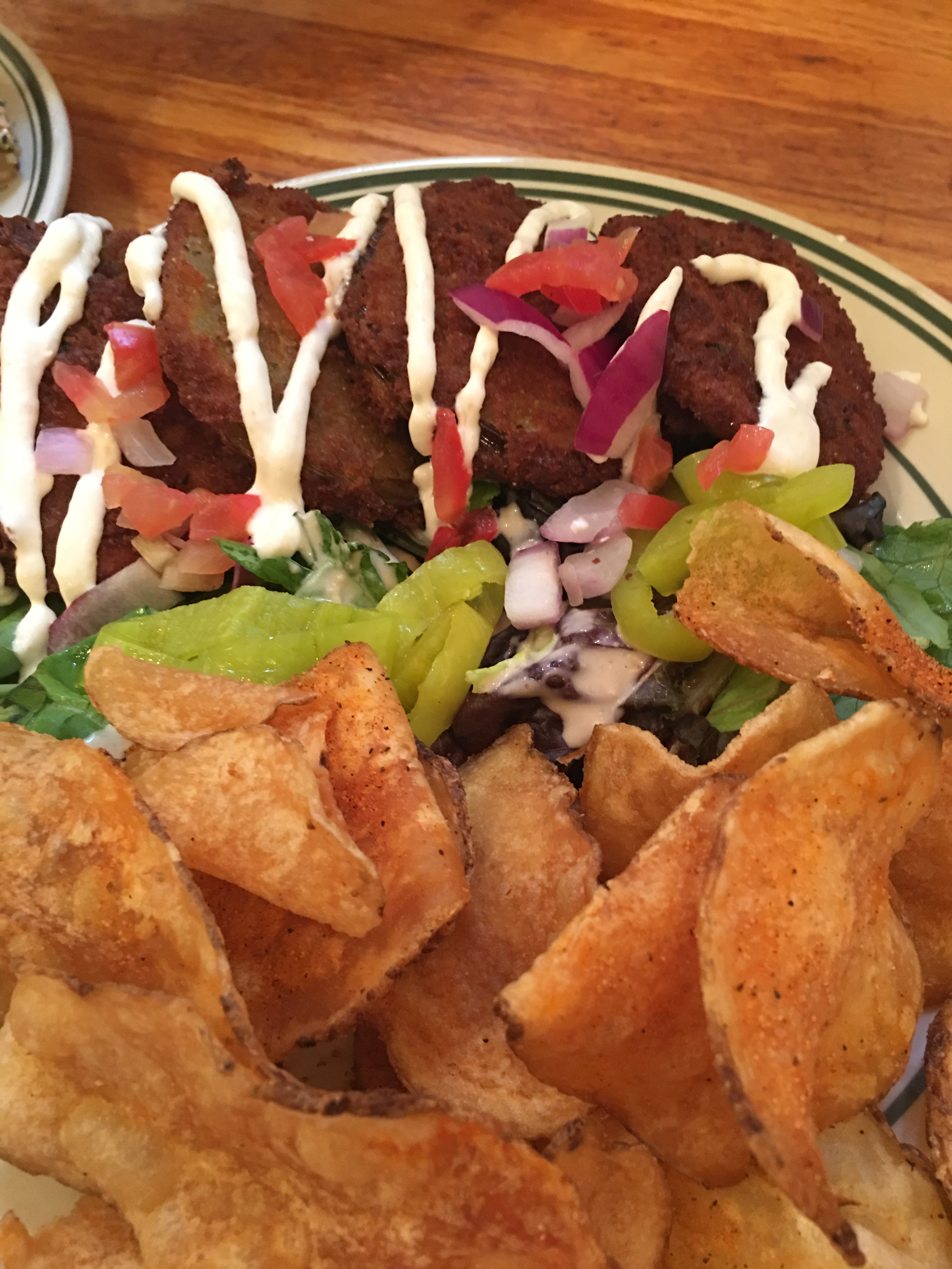 For an appetizer we had fried green tomatoes with homemade chips, and garlic bread came with your meal