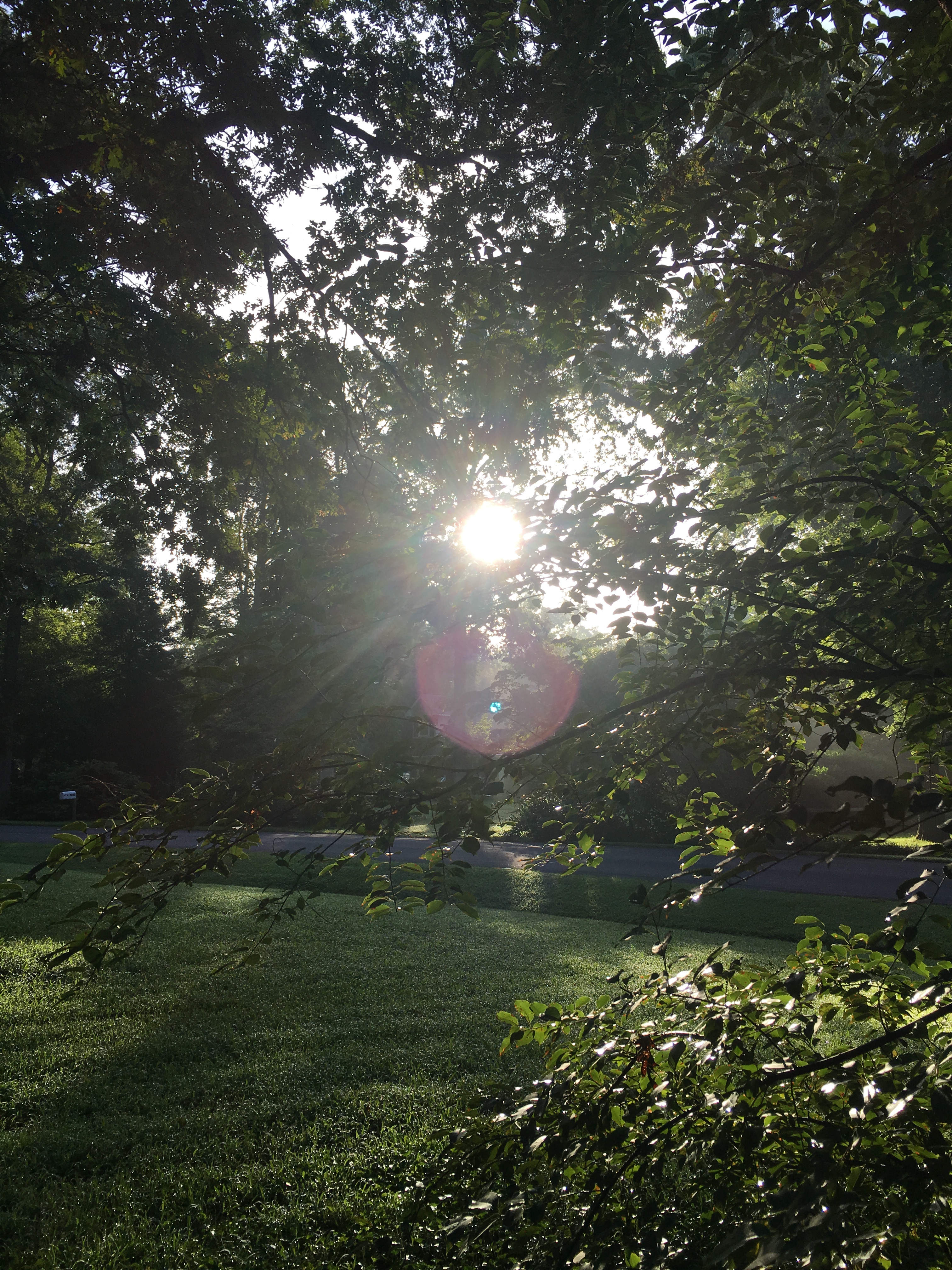 Right at this very moment, I’m hiding in the bushes of my front yard watching the sun come up. I’m worshiping. I hear His song through the birds gathering and being– “His Eye is on the Sparrow”. I know He is pursuing me with His unfailing love and goodness. A train whistle blows. Travelers. Progress. Moving forward. The sun on my feet, wet from the dew,