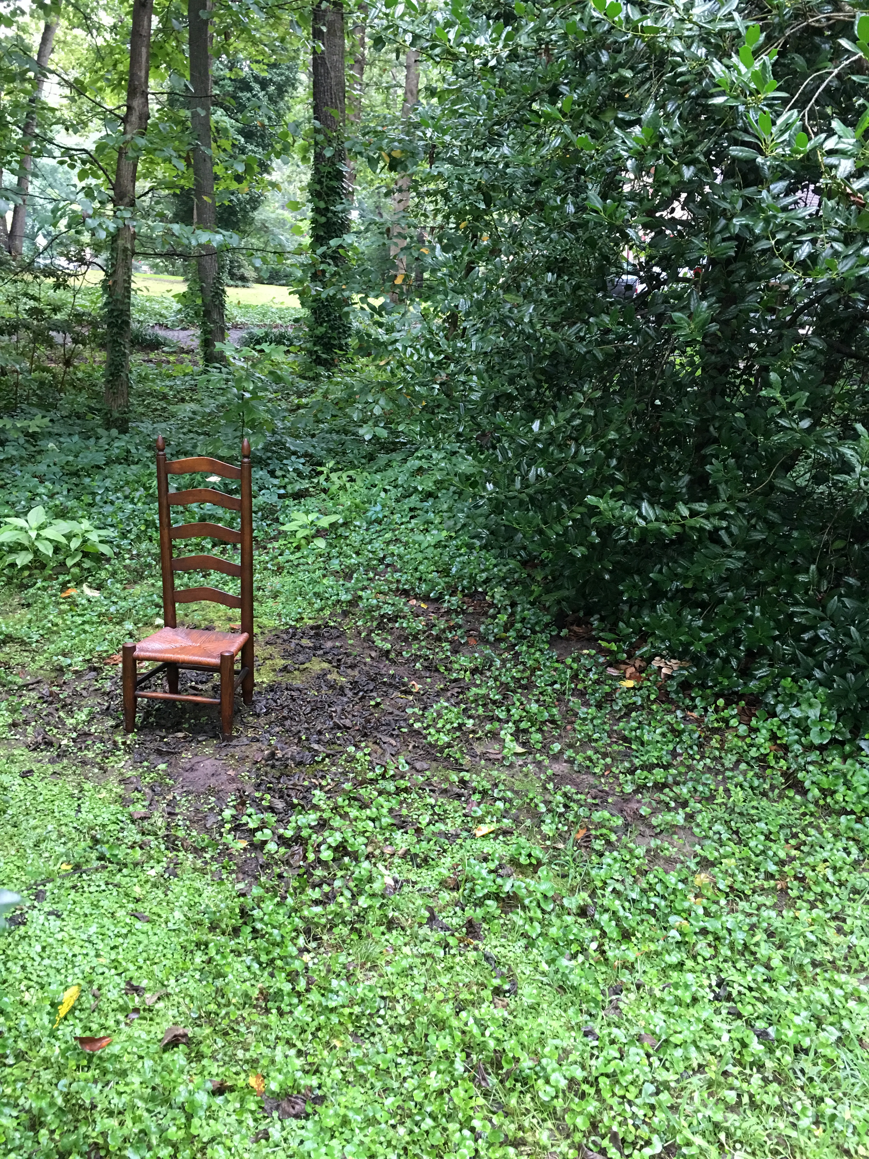 A fun challenge. I have certain spots in my yard that are obvious to study God’s Word. The chair on the patio. Yesterday, God was calling me away from the usual to experience His fullness. I grabbed a small, wooden chair, coffee, and Bible. Oh how He captivated me and helped me to experience love, confidence, and rest.