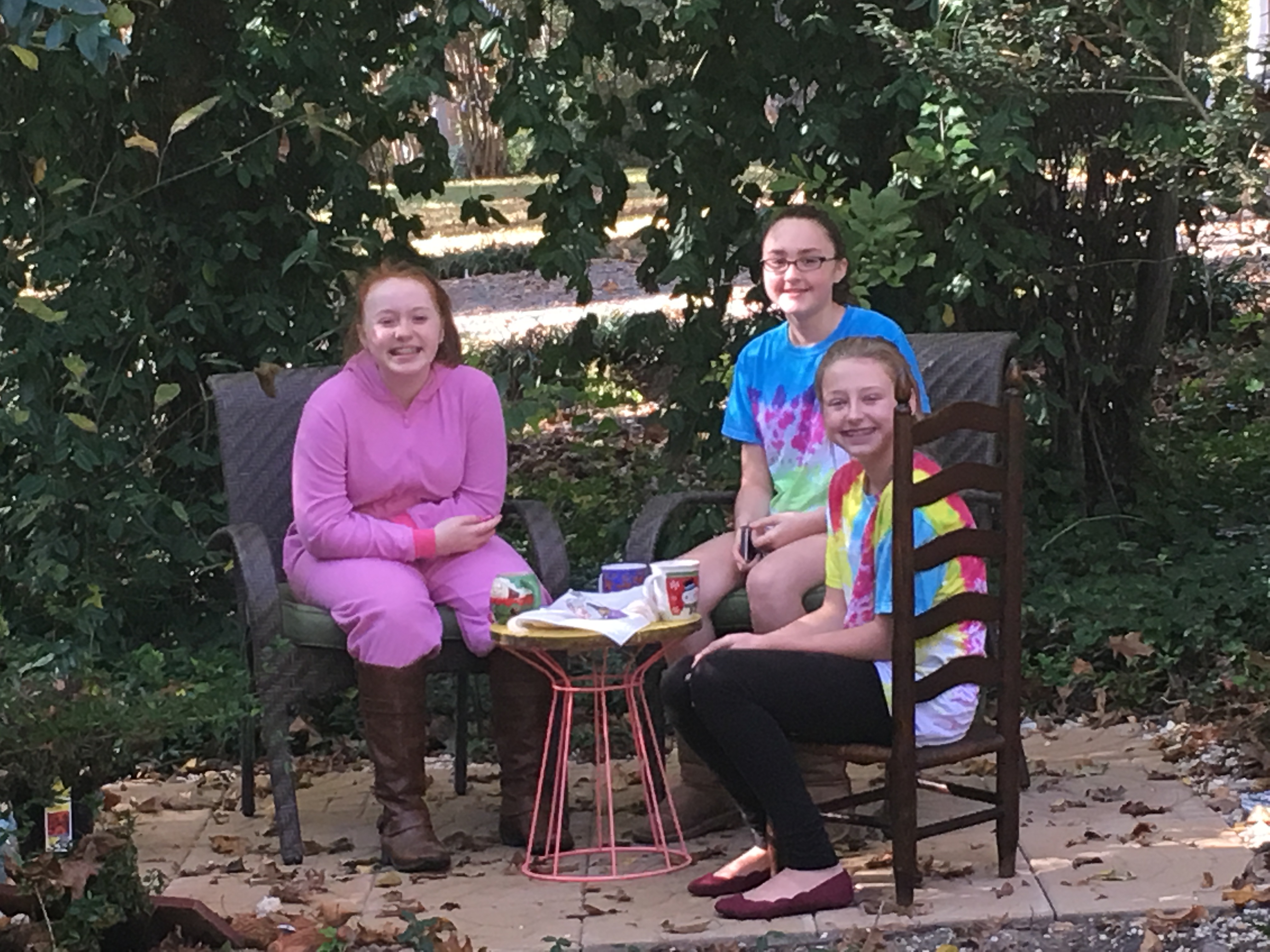 Our youngest daughter had a sleepover, in which, they enjoyed a lovely picnic breakfast in my prayer garden.