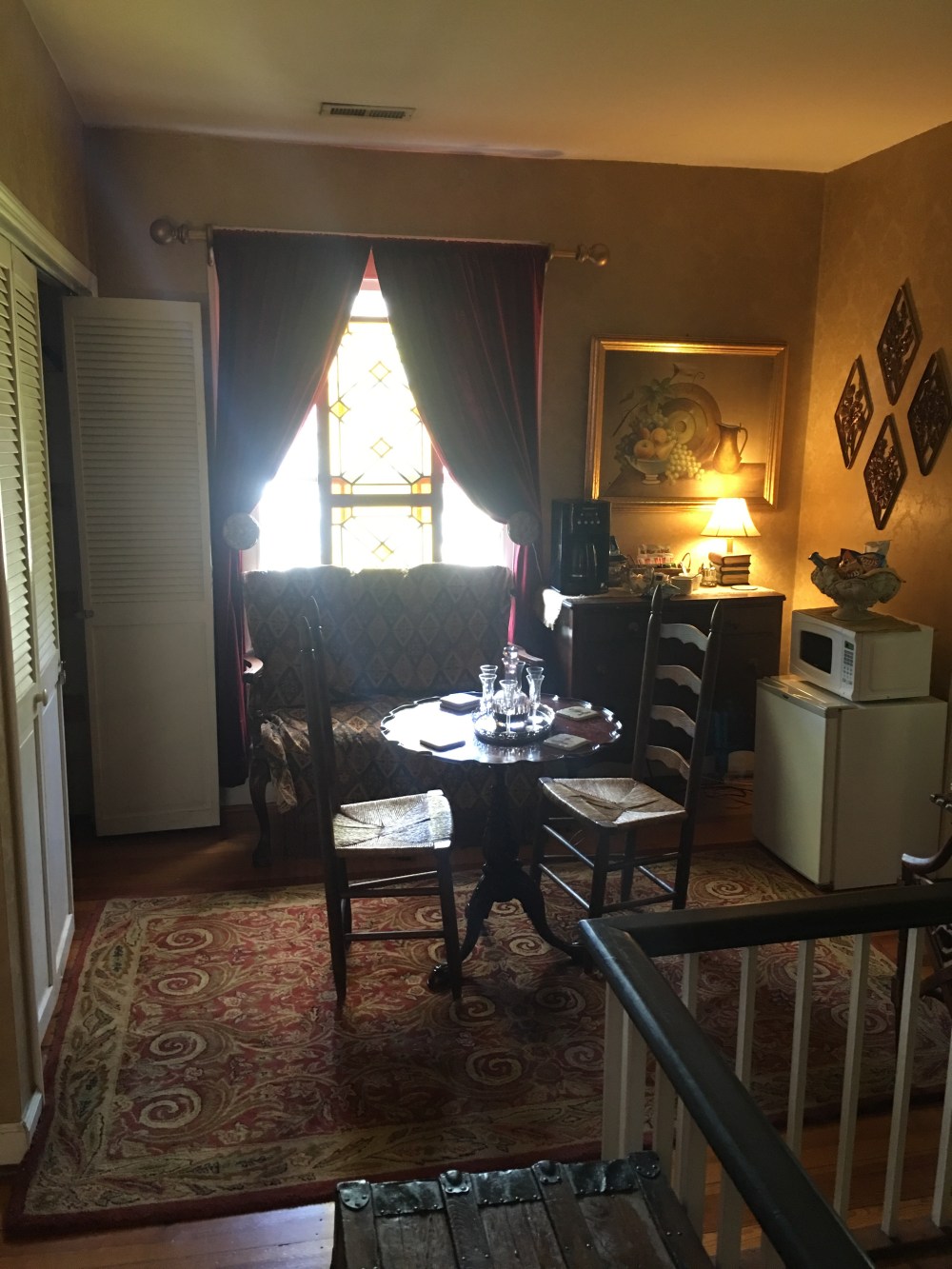 We enjoyed sitting on the porch in rocking chairs, looking at the water, and gazing at the beautiful trees turning color.