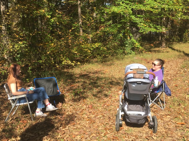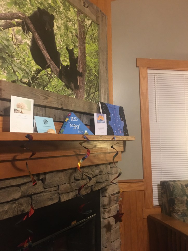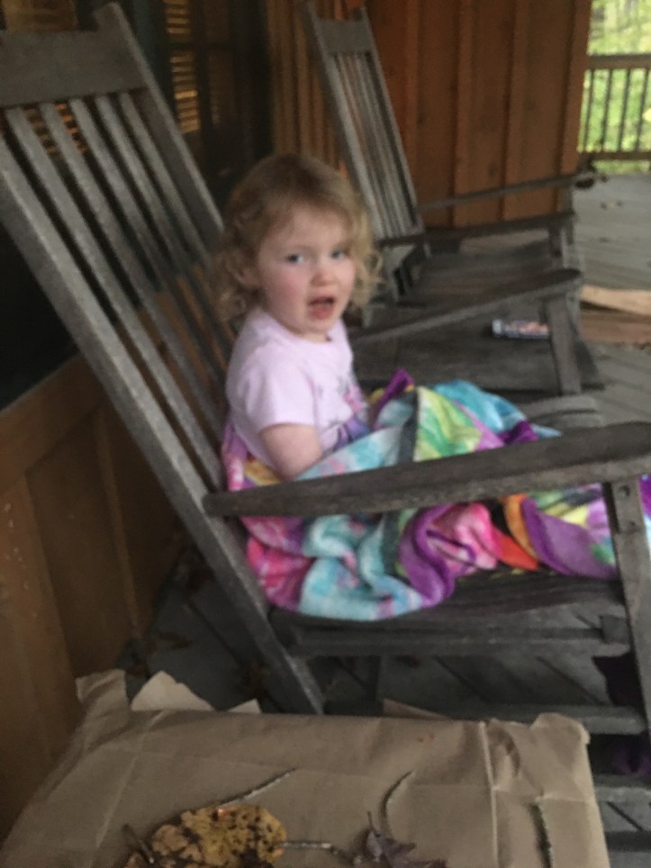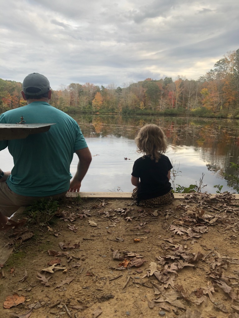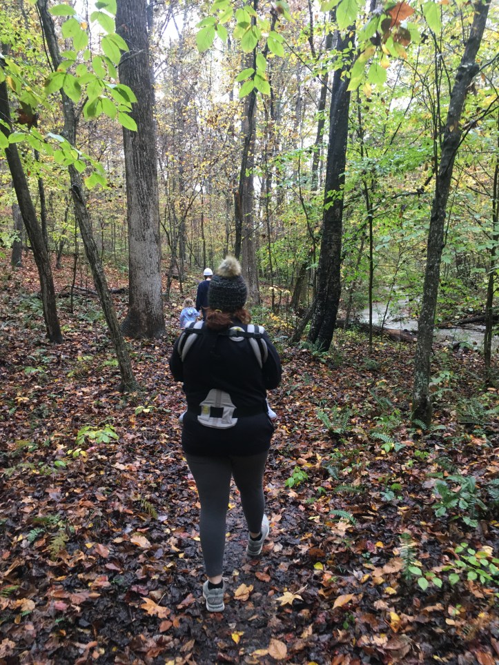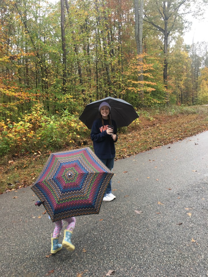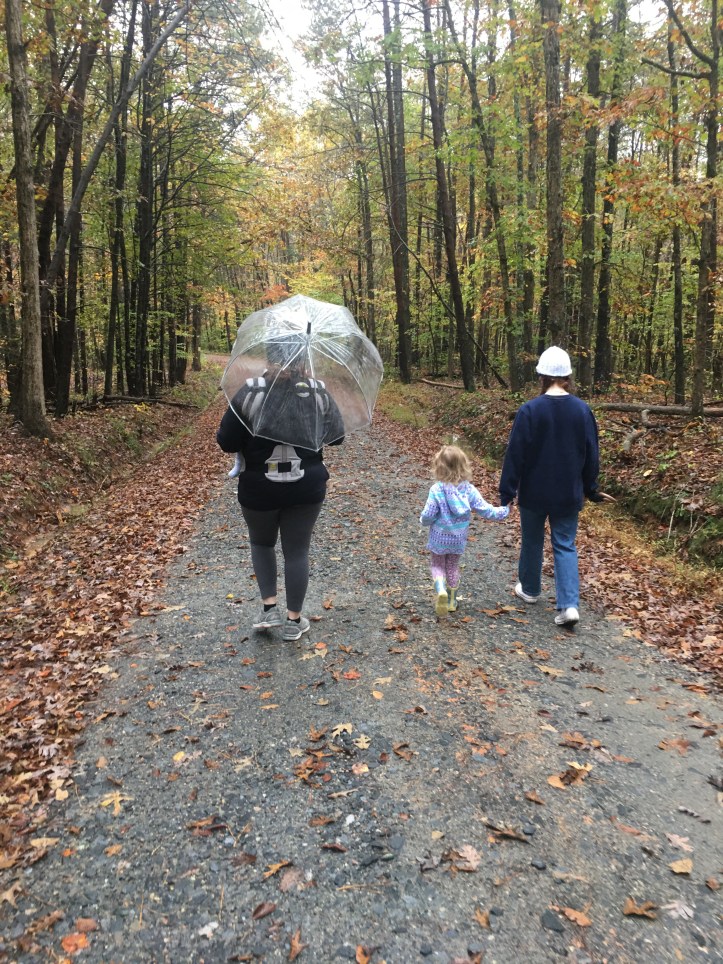 Hebb/Lamb decided to stay one more night. The rain the next day, fire in the fireplace, and walks were just what we needed. The rain held up for just a bit for us to take adventures with Adelaide and the family. She loved pretending to scare Ace by hiding in the woods and jumping out to scare him. Her favorite was to sing any song from “The Greatest Showman”. She also loved using her crayons to sketch over the leaves we found in the woods.