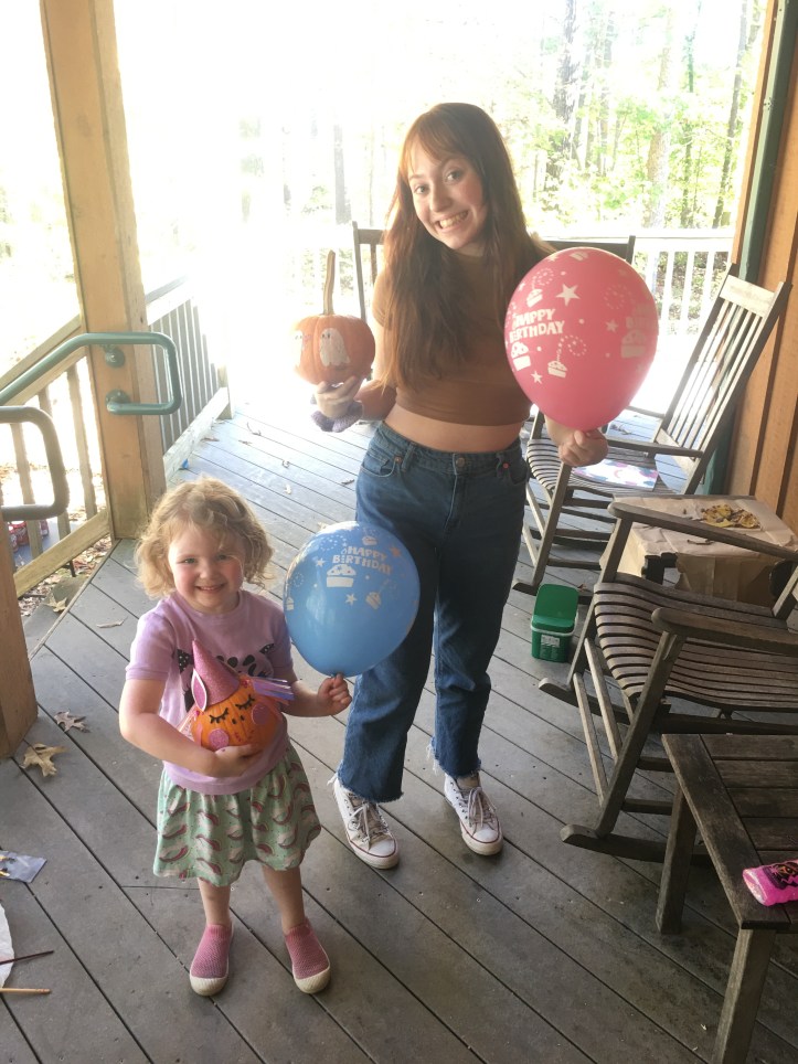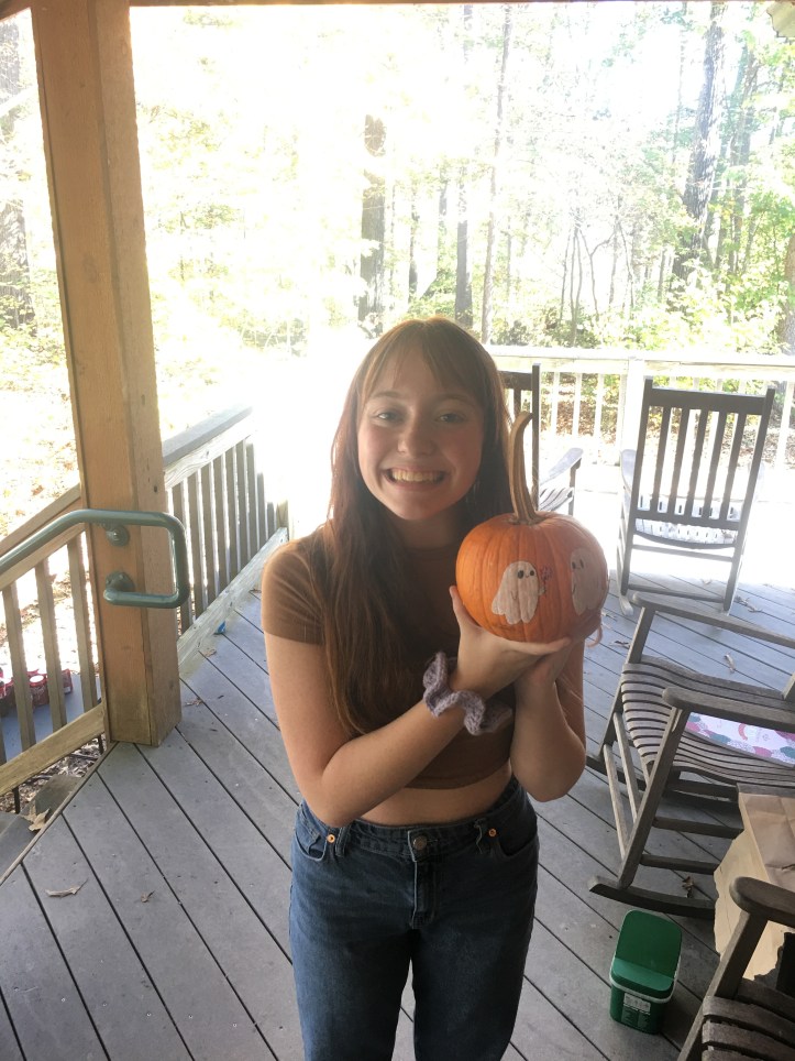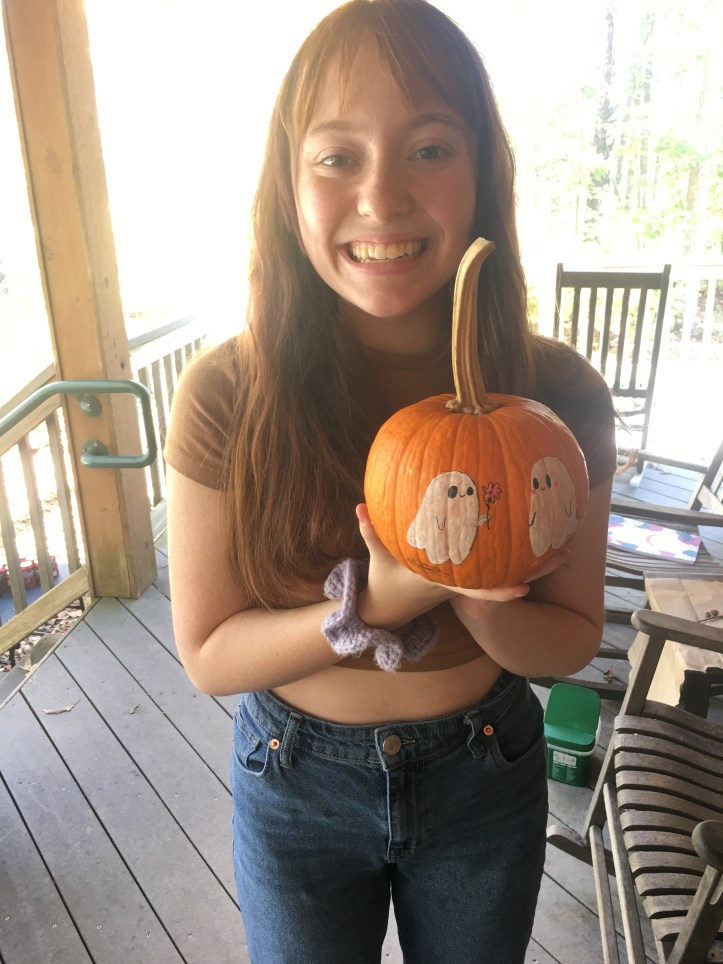 We decorated pottery and pumpkins. Carrie was able to pick up our pottery and help us with a craft of choice. Adelaide’s unicorn pumpkin won the cutest prize! Everyone showed their unique creativity. Valentina painted pictures based on her Papa’s poetry and nature. She enjoyed climbing trees and being in nature.