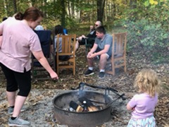 Thank you Victoria and Carrie for organizing the schedule and food. Thank you Parish and John for cooking and keeping the fires going. We moved dinner on Saturday to lunch to accommodate the weather and the folks visiting during the day. We had hotdogs/hamburgers, yummy sides, and desserts. Later that night we had S’mores at the Godbey cabin. It was nice to sit in the dark, laugh, raise a glass, and cheer each other on with love.