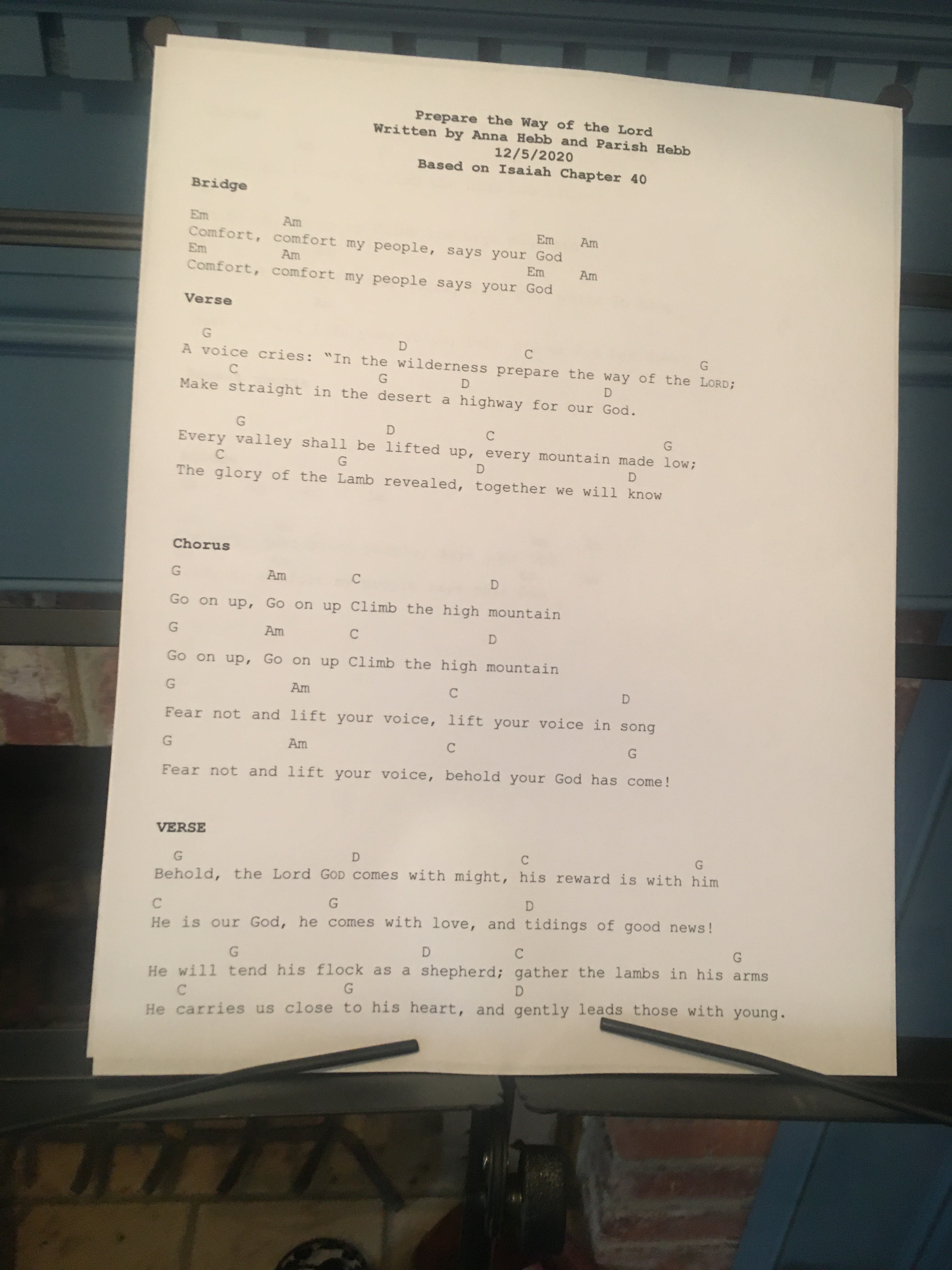 Parish and I have a couple’s advent calendar. Today, we were challenged to write a Christmas song. We talked about options of silly versus serious, and then I got an idea to listen to our daily devotion on my Pray as you go app. Our challenge was to use the verse highlighted for today. Today’s passage was Isaiah 40! We spent the morning writing, composing, speaking of the meaning, and recording. We are still working on our rhythm, and we want to add alto–Victoria and Valentina! Oh! I would love a cello with this song. Just like marriage–a work in progress.