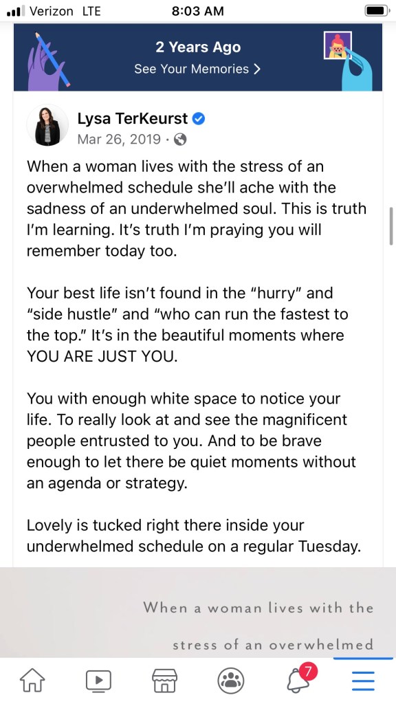 Why am I telling you this story? I’m sharing a small part of my life to acknowledge the impact of the chain of events. By the time Thursday night hit my mind and body, I was pretty much done. I adjusted my hurts, tears, and happenings into that little box I keep stuff like that in. No margins is what my mom would say to me, pretty much all my life, which should tell me something. “Anna, you have no margins.” This means I have no space to be living.