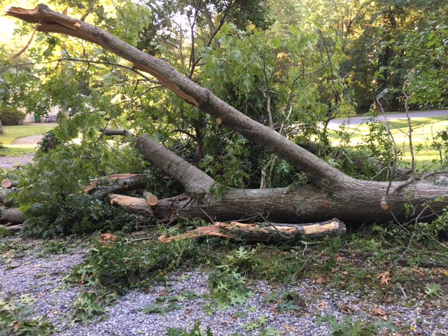 The tree snapped midway. This was a huge oak tree.