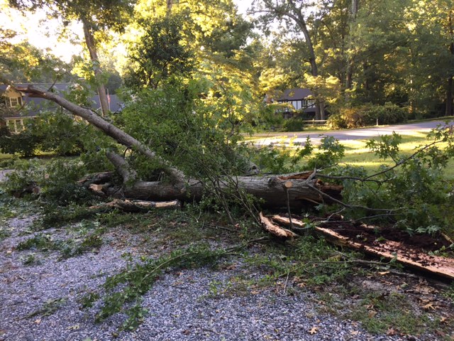 Parish went outside to check and sure enough the tree my dad wanted to come down had fallen. No property damage.