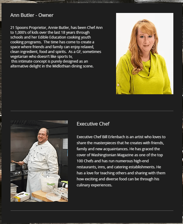 Ann and Bill are a team who masterfly create experiences for the young and old through dining and cooking classes for children.