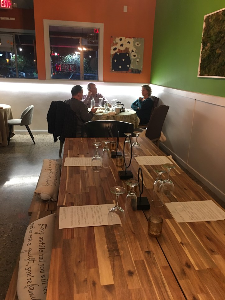 Bill and his wife, Ann, provided an “at home” feeling. They would come and check on us, clear plates, and ask us questions to get to know us. We found out that Bill provides education for a local therapeutic school. He started a culinary curriculum for students who need to believe they can succeed in life and learn the fine art of cooking, serving, and communicating around a meal.