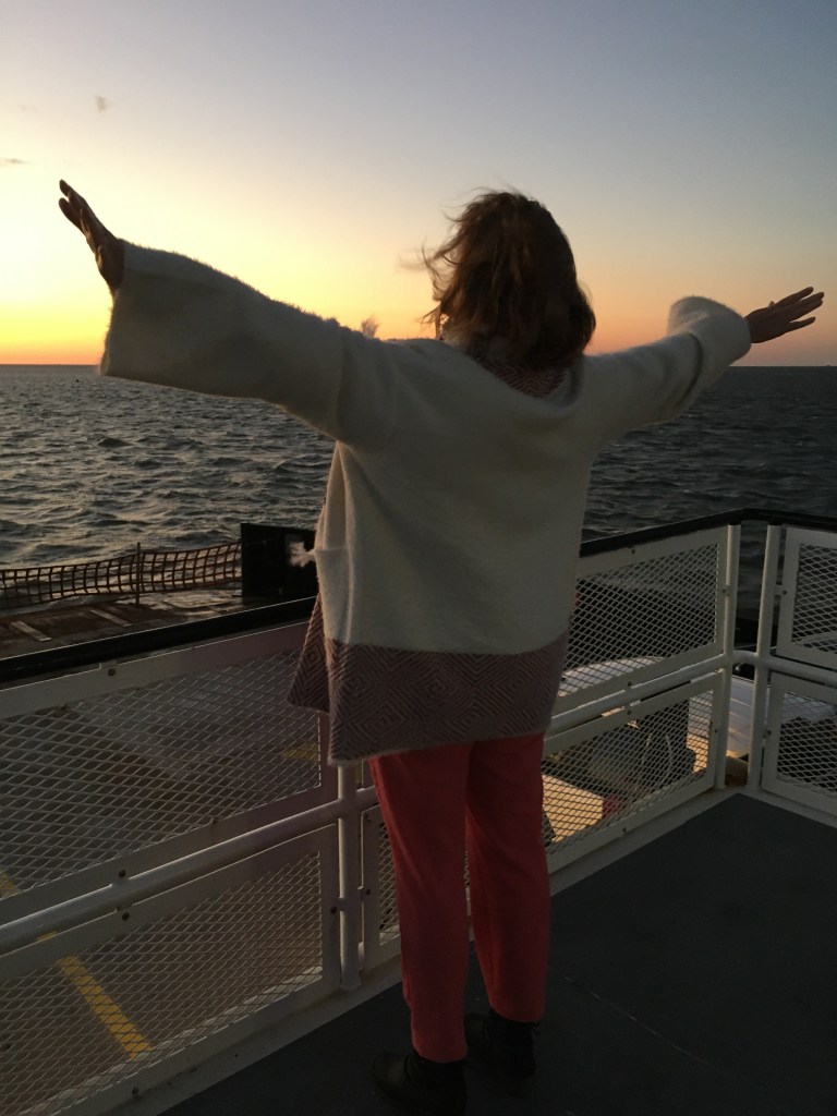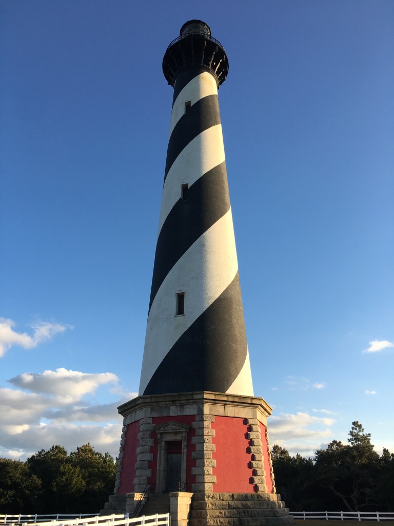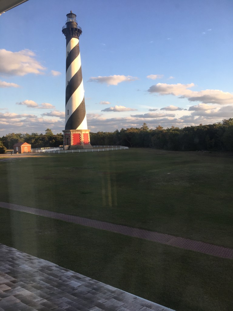 Our last full day, we went to Hatteras Lighthouse AND Ocracoke! Another 20 minute ride, an hour ferry ride one way, and a FABULOUS dinner at The Flying Melon. This was a last minute decision that took a whimsical heart! We did it and had so much fun! We were the last car on the 5:00 ferry. It was a rocky boat experience due to the weather and wind. We laughed. I did this with Victoria many years ago. On my own. In my little Ford Festiva with not a care in the world. Who was that woman? We laughed again. We enjoyed watching the people on the boat. One particular person, we believe, was “sea sick”. We prayed for him. We also giggled at all the ways he was trying to alleviate his illness. He stood, walked around, raised his hands, and laid down. Please know we felt for him and prayed and we could relate.