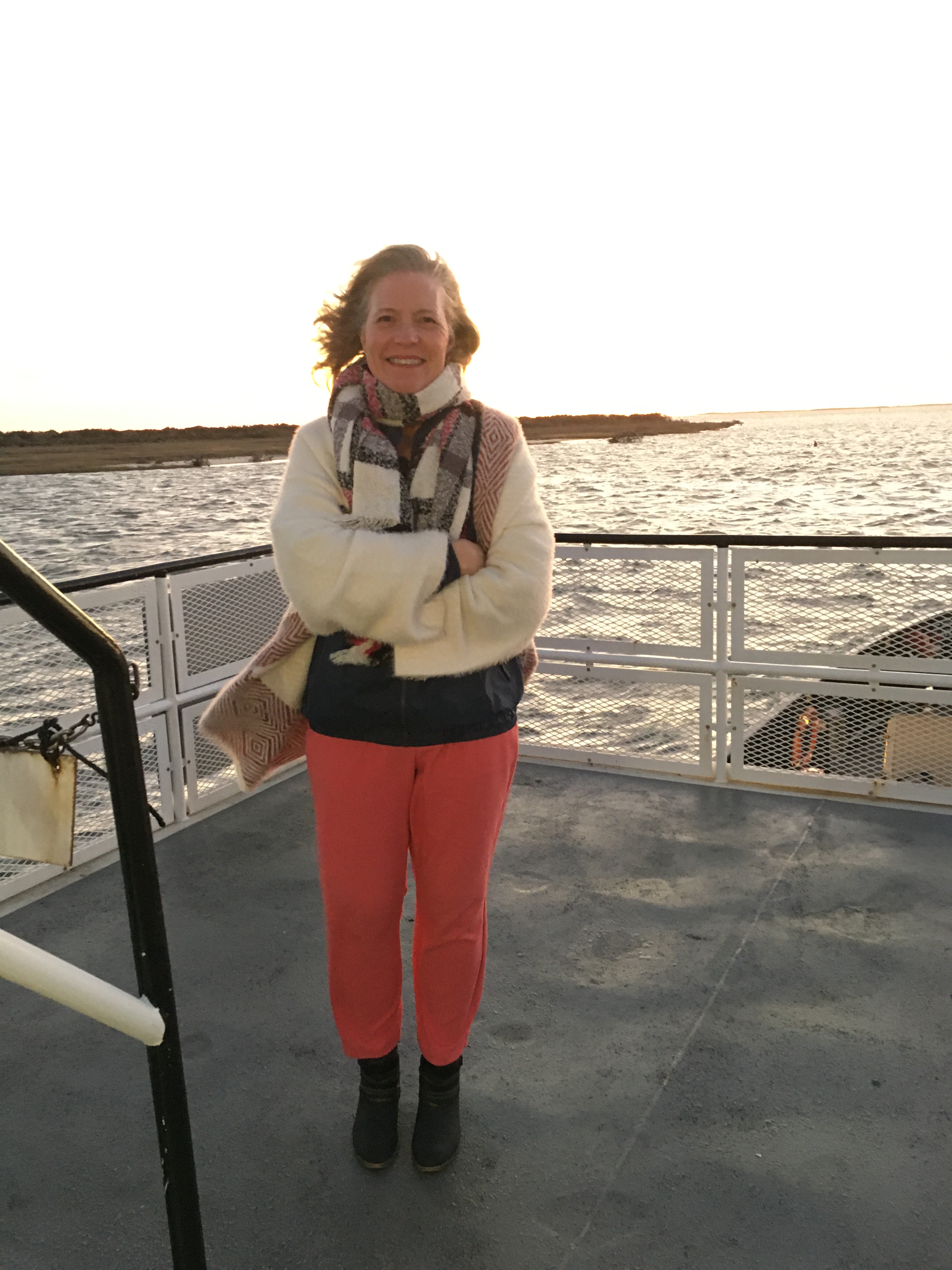 Our last full day, we went to Hatteras Lighthouse AND Ocracoke! Another 20 minute ride, an hour ferry ride one way, and a FABULOUS dinner at The Flying Melon. This was a last minute decision that took a whimsical heart! We did it and had so much fun! We were the last car on the 5:00 ferry. It was a rocky boat experience due to the weather and wind. We laughed. I did this with Victoria many years ago. On my own. In my little Ford Festiva with not a care in the world. Who was that woman? We laughed again. We enjoyed watching the people on the boat. One particular person, we believe, was “sea sick”. We prayed for him. We also giggled at all the ways he was trying to alleviate his illness. He stood, walked around, raised his hands, and laid down. Please know we felt for him and prayed and we could relate.
