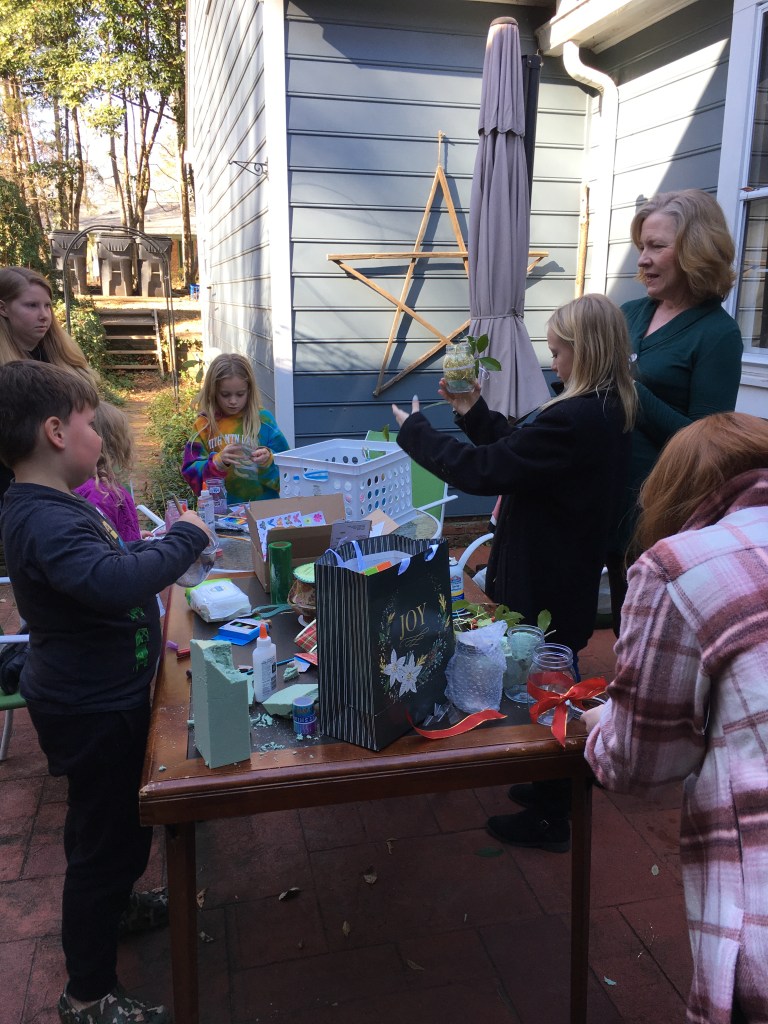 One of my great-nephews, Sawyer, created a candle craft from a mason jar. He wrapped the gift with my help and his Mimi’s swift hiding in the car. He wanted to surprise his mother. His smile can melt your heart.