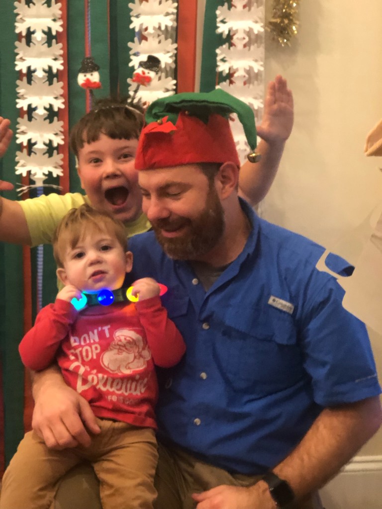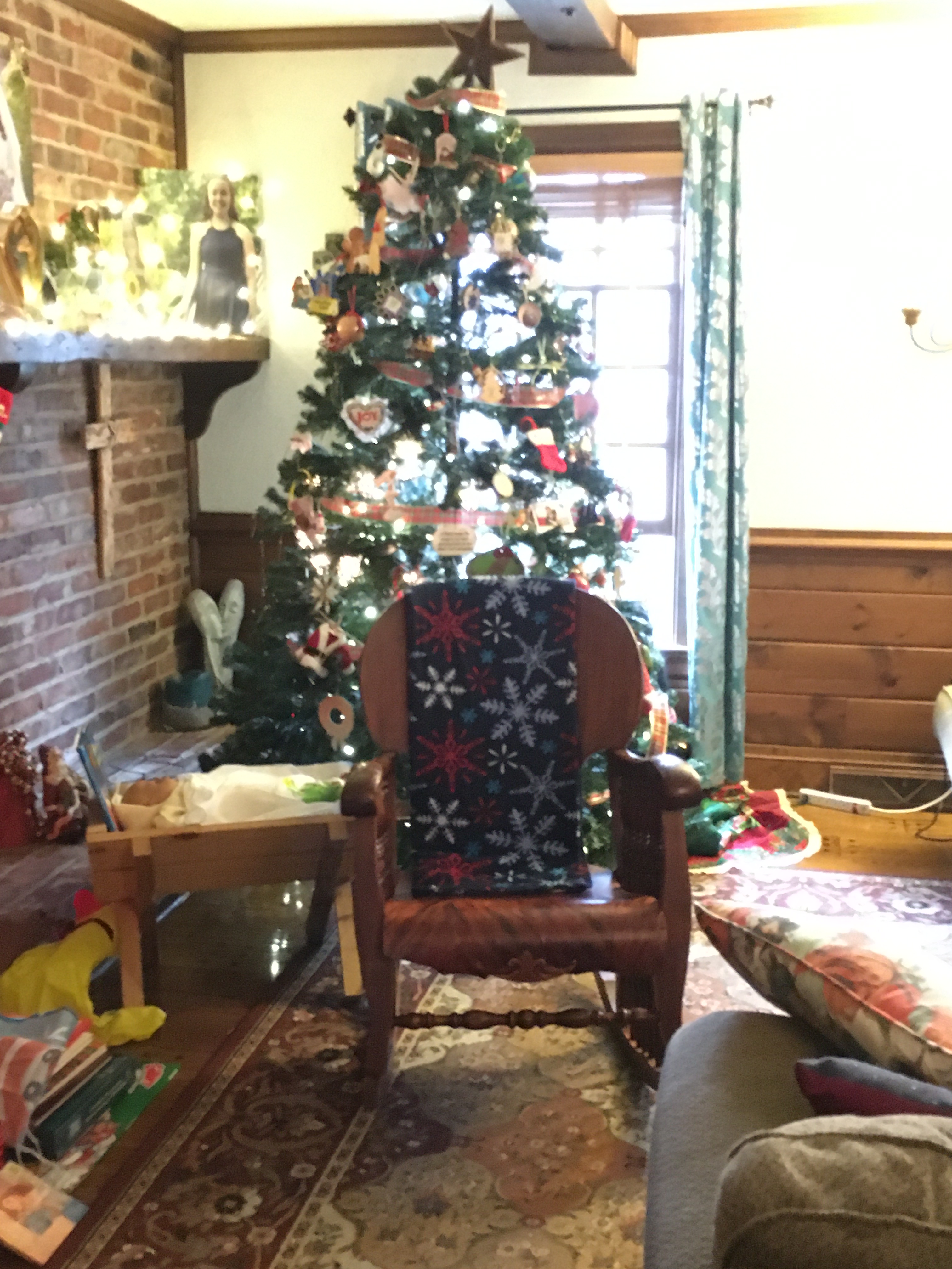 There was a moment in which the old rocking chair that Parish refinished in his 20’s for our first born, Victoria, was empty but scooted next to the tree. This chair belonged to my great-grandfather. My dad used to sit in the chair each Christmas. This was his chair when he would visit our side of the house. The memories radiated from the rocking chair as we sat around the kitchen table eating lunch. The mess and the crooked star were perfect.