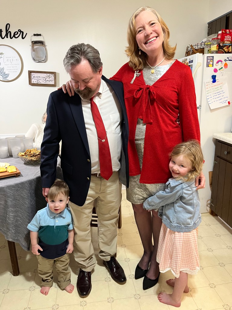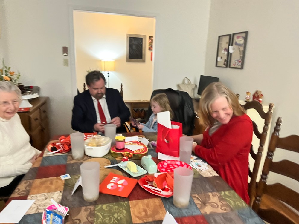 The next day my daughters prepared an anniversary dinner for us. We are celebrating 33 years. We dressed up, sat around a table with conversation and laughter, and played Old Maid with my 5 year old grand-daughter. Place cards for our seating, bakery ordered chocolate cake, my son-in-law’s cooking, and a toddler singing “Happy Birthday” (Why not let him believe it’s his birthday?) brought a visualization of “fully known” and “the most love”. At one point, I was in the bathroom and when I opened the door my grandson followed me in and shut the door. He played “where’d he go?” over and over again with me using the door mirror. He would step back from the mirror and ask “where’d he go?” and then jump in front of the mirror and shout “there he is!” Every single time was like the first time and he would give a big belly laugh. I played that game for as long as he wanted. Pausing. Laughing. Noticing great love and joy.