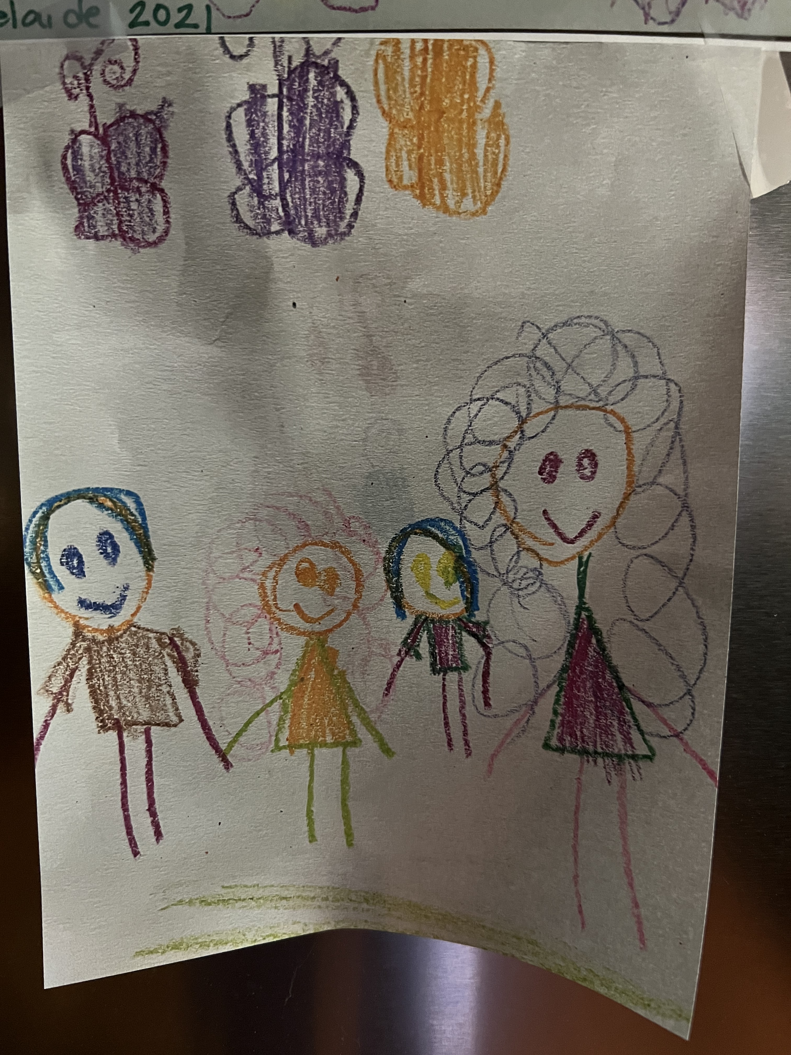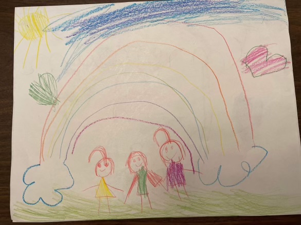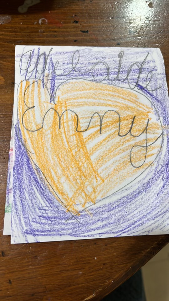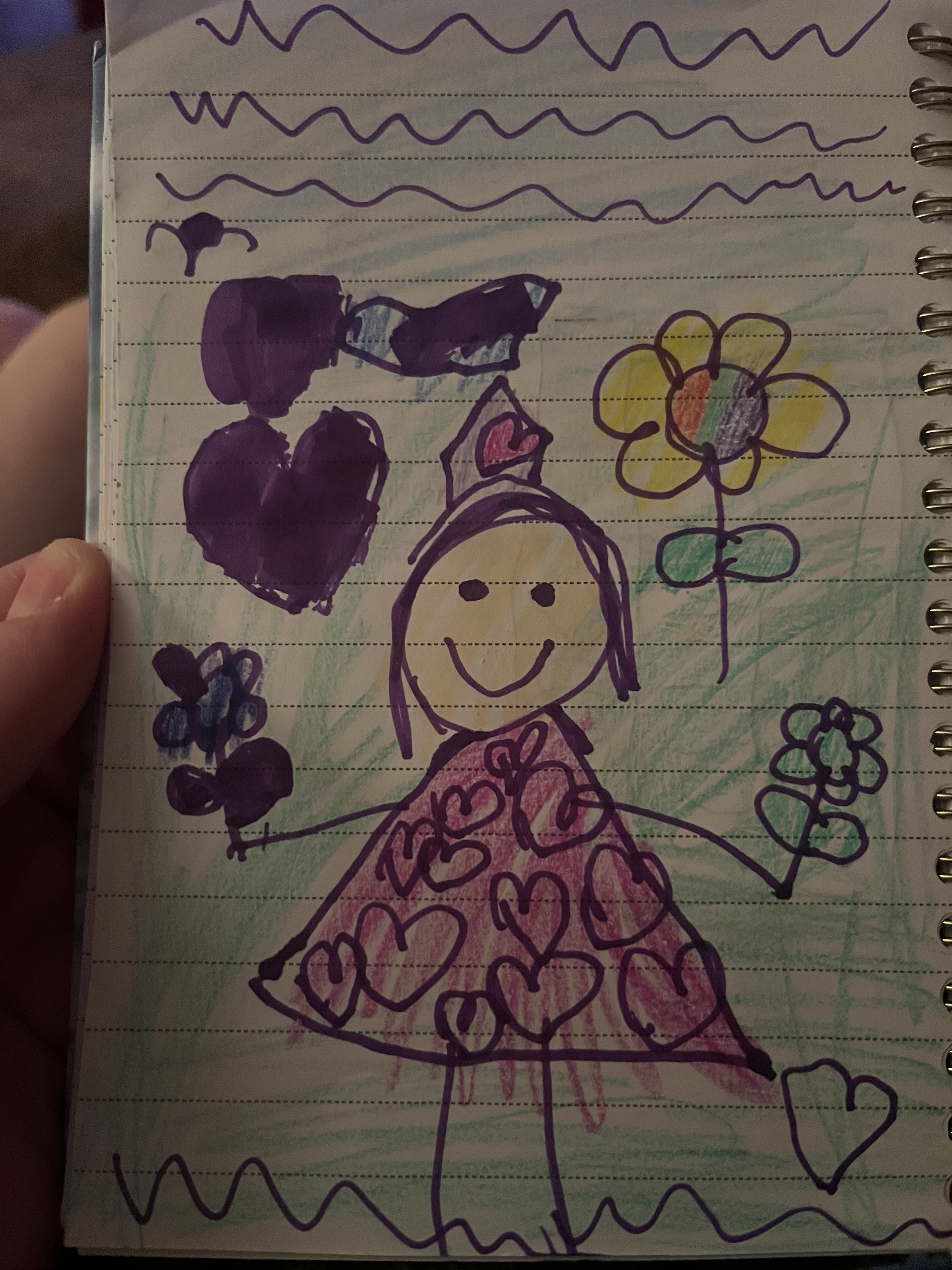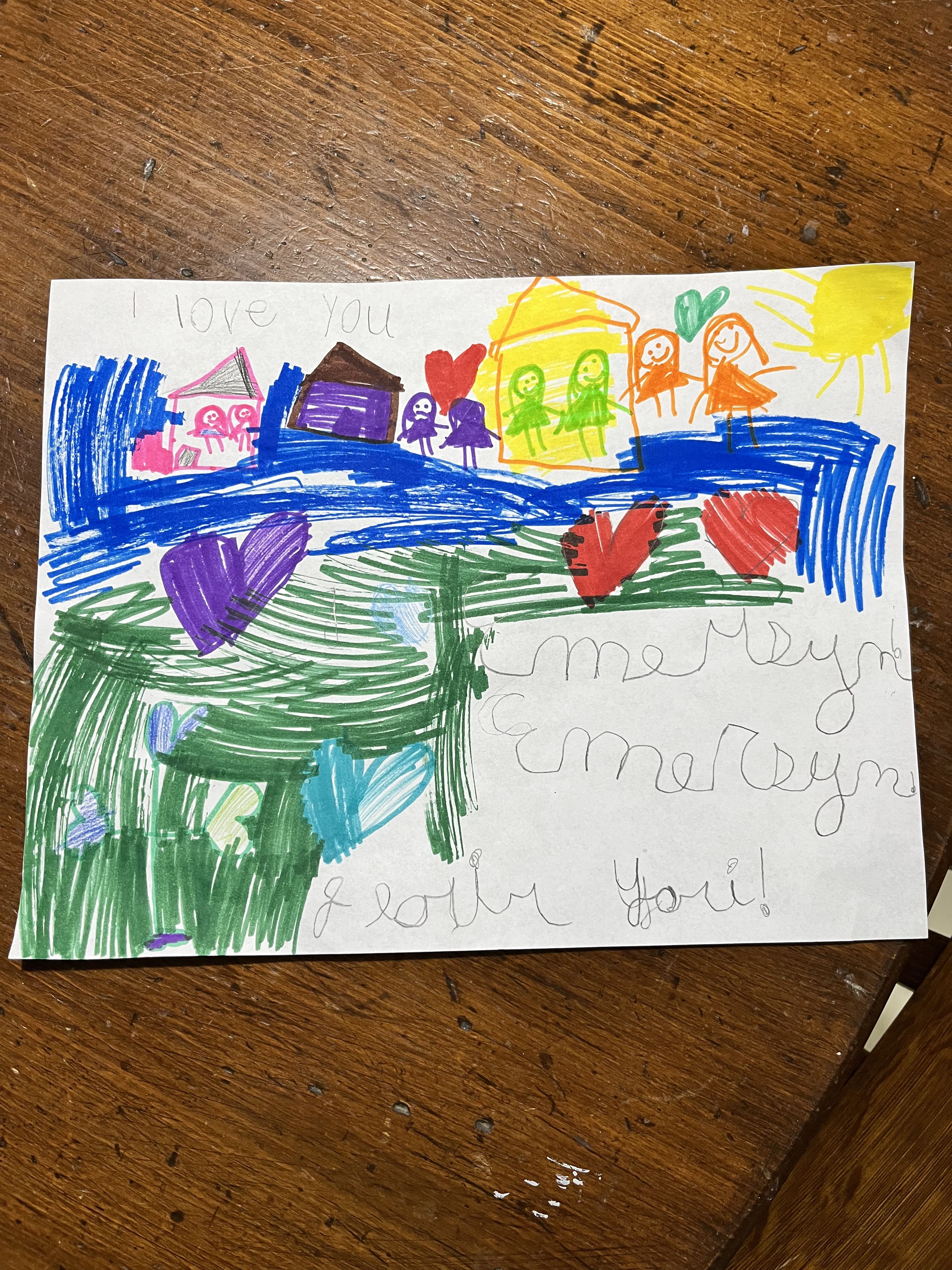 One of your friends passed away. Here name is Emmy. One of Emmy’s favorite songs was “Let Me Tell You About My Jesus”. You sing this song loud and strong. Your artwork reflects your love for Emmy, family, and Jesus.