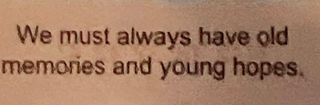 We usually order out and hit the bed early on the travel day home. After hours of unpacking, driving, and laundry we settle in. This quote was in my fortune cookie. Young hopes describes my love for curiosity best. As you age, making sense of the world can become overwhelming. Young hopes keeps us grounded in optimism and curiosity.
