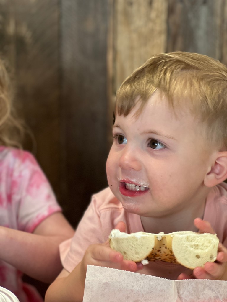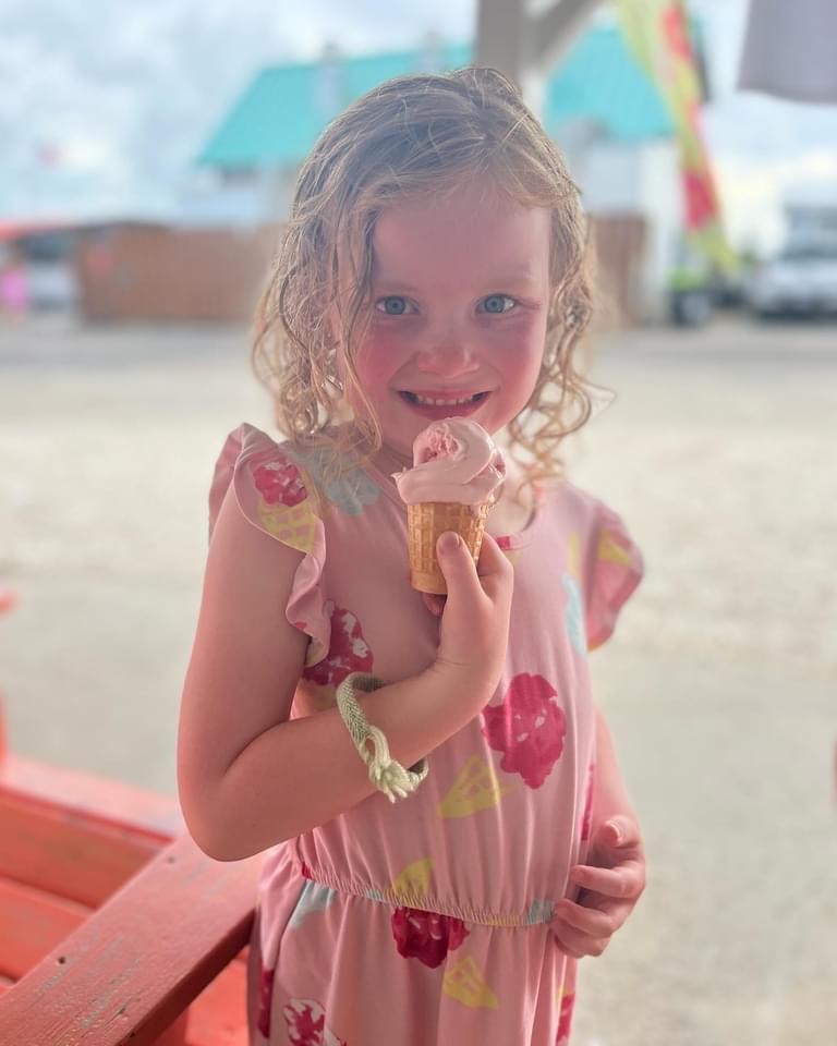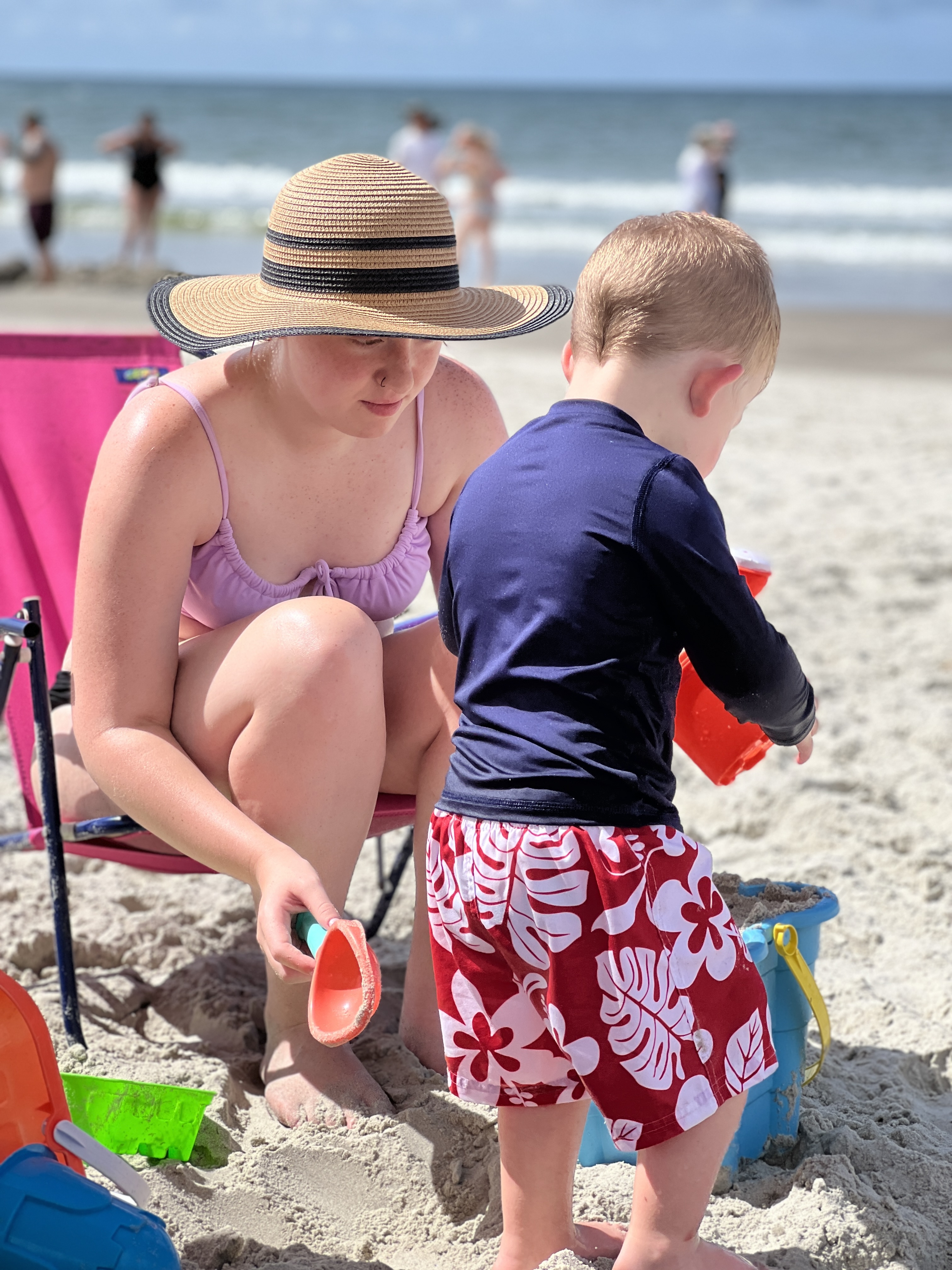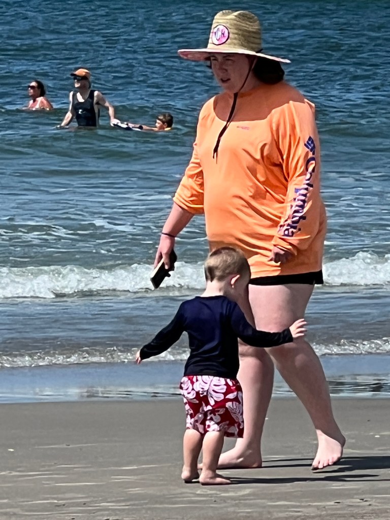 On the beach, Valentina discovered a sand crab in her sand bucket. She took the time to watch and play with the crab and encouraged the children to hold the crab as they giggled. We saw a community gather on the beach to help a man real in his large fish! We all cheered! Random activities like a person parachuting onto the beach, paddle boarding, and surfing caught our attention. One of our favorites was the Italian Ice from the cart that happened by our tent.