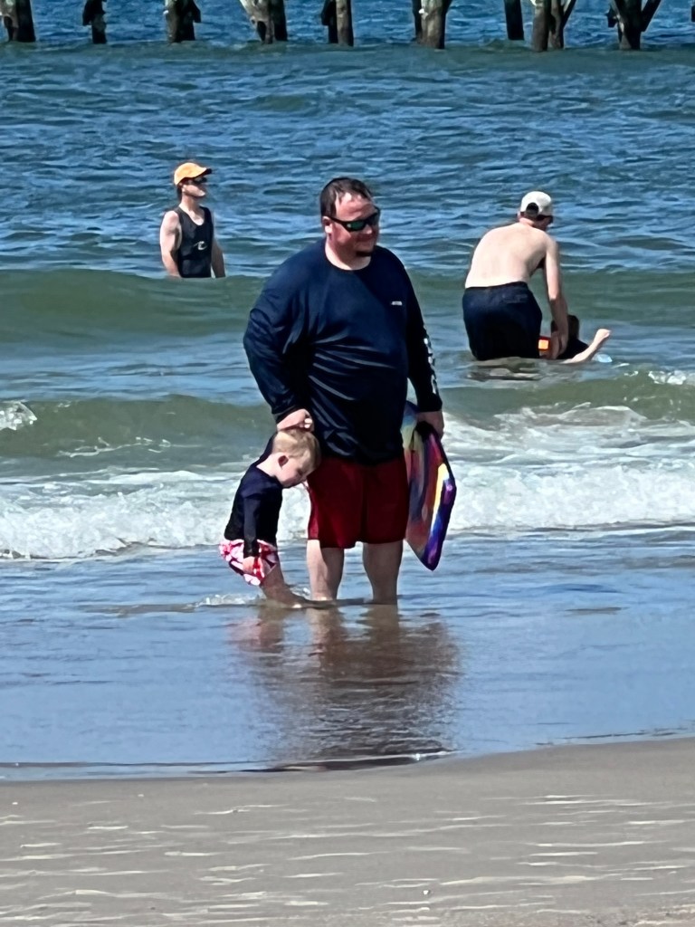 Little Spencer waved and talked to people along the beach. He would run to them and give them a big hug and tell them all about his day.