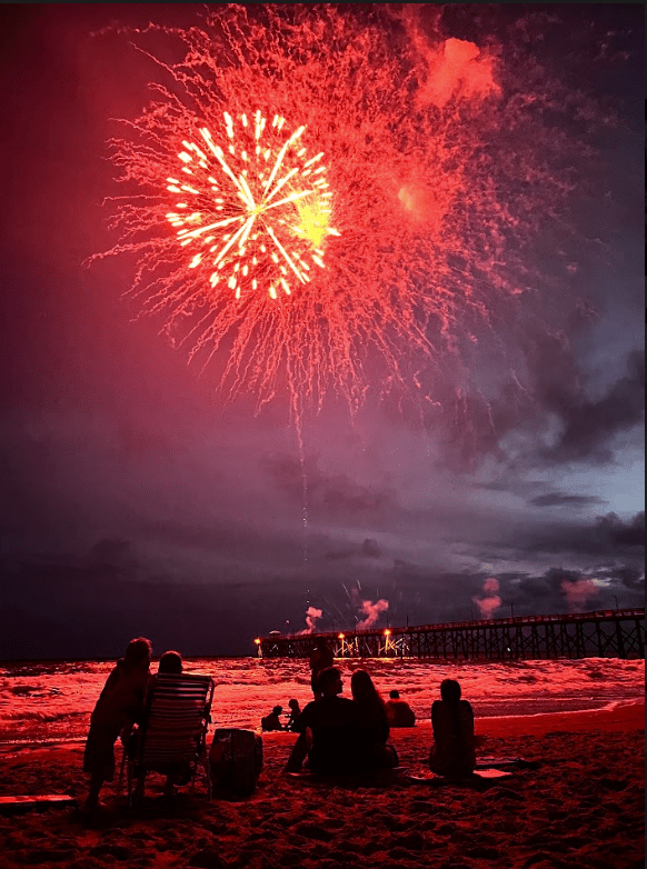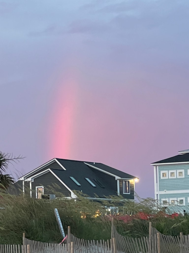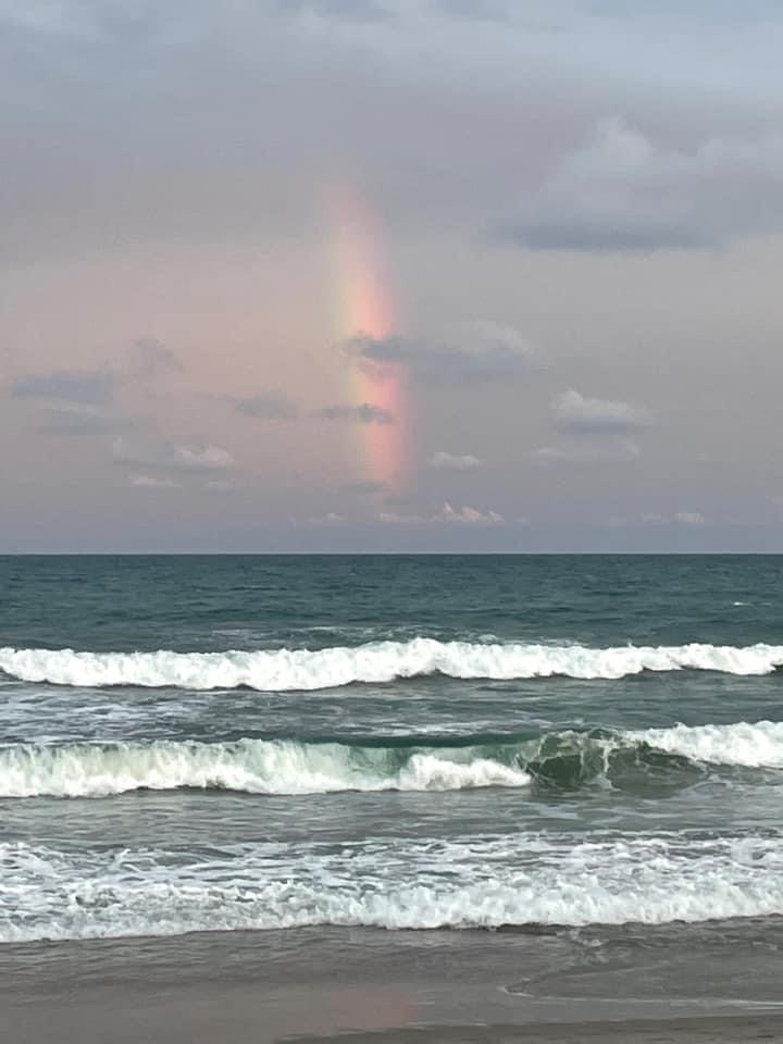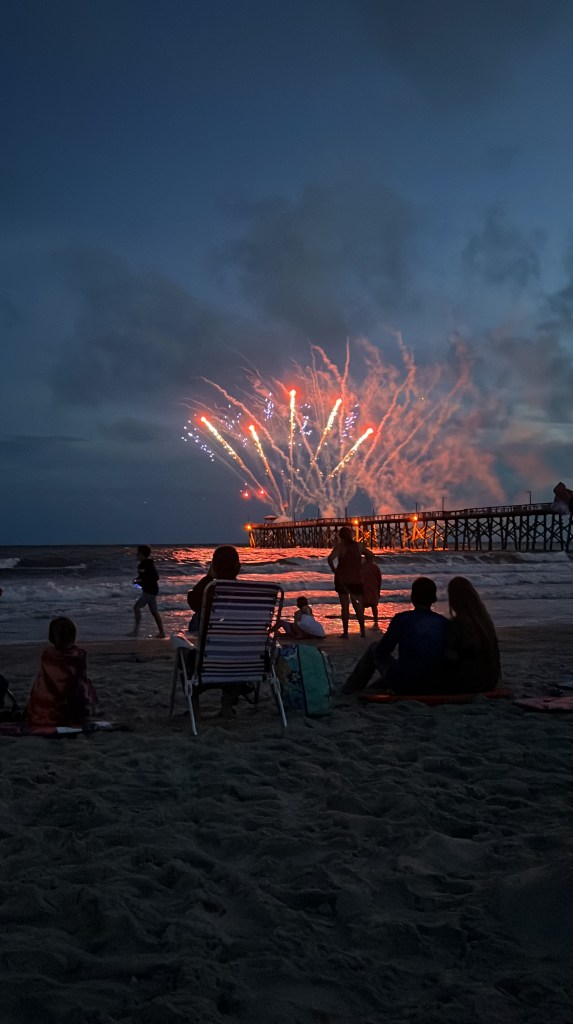 Oh the beauty of a rainbow and fireworks our last night together. God’s promises and the practice of adventure and seeking beauty. Everyone on the beach there to be amazed and celebrate freedom. A friend of mine at the same time had the same rainbow on her beach in Topsail, NC, which is about another hour or so south of Oak Island. I see you Heather! God connects us.