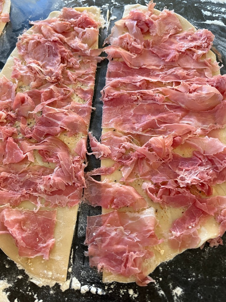 - 1. Preheat oven to 425°. Mix butter, seasoning blend and garlic salt. Unfold puff pastry sheets onto a lightly floured surface. Spread each with 1-1/2 tablespoons butter mixture and sprinkle with 1/2 cup cheese. Top with prosciutto, pressing lightly to adhere.