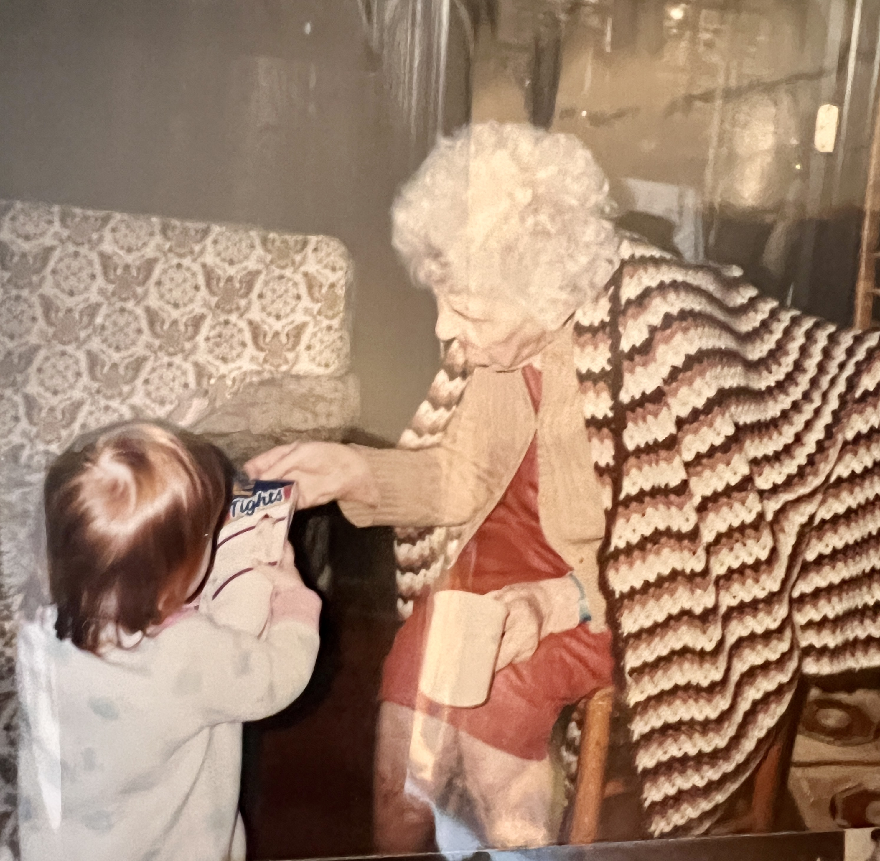 Great Aunt Shirley in the background, Grandma Louise Lloyd (Anna’s mom), and Great-Grandmother Veora Pierce. Veora was feeding Victoria Louise ice cream. I still remember that day. Victoria loved her great-grandmother, and she danced around singing and laughing.