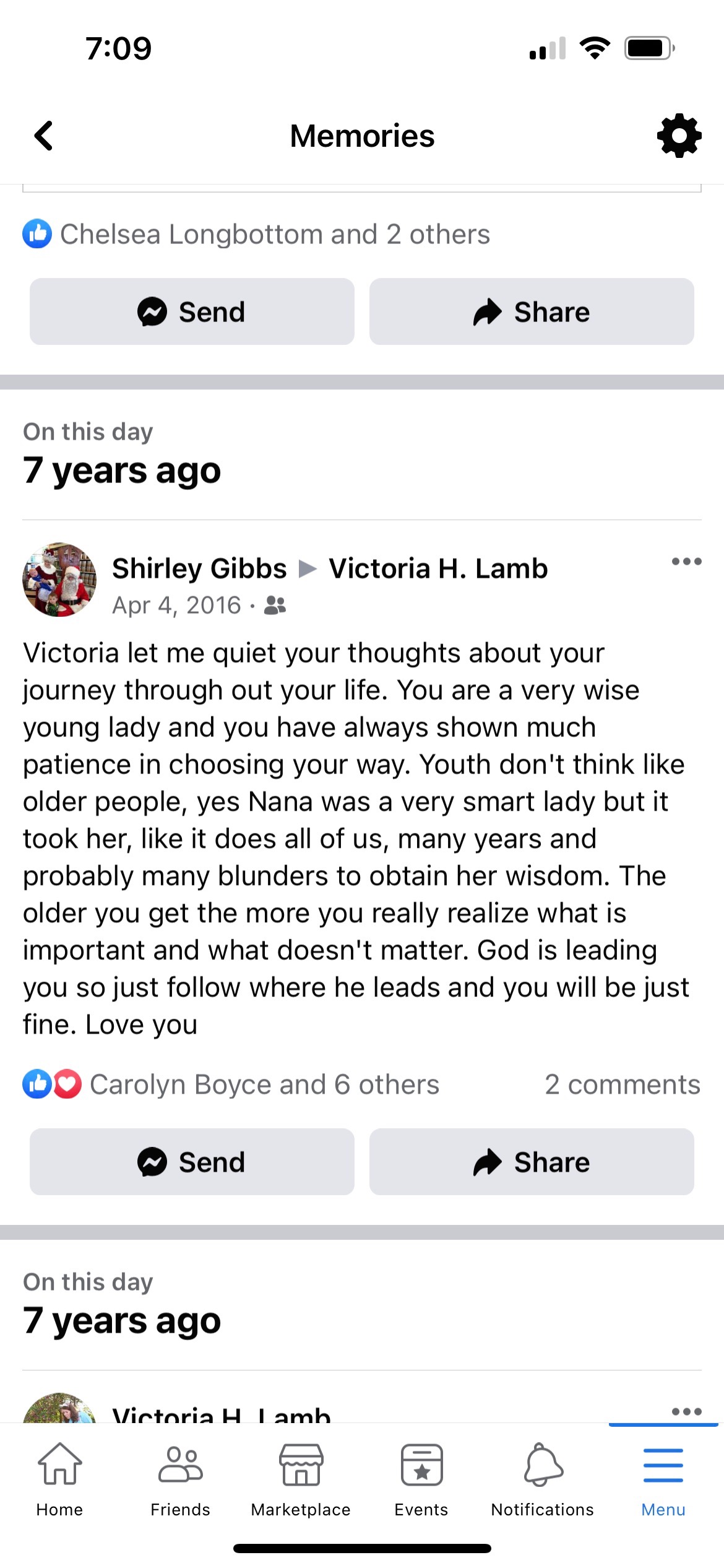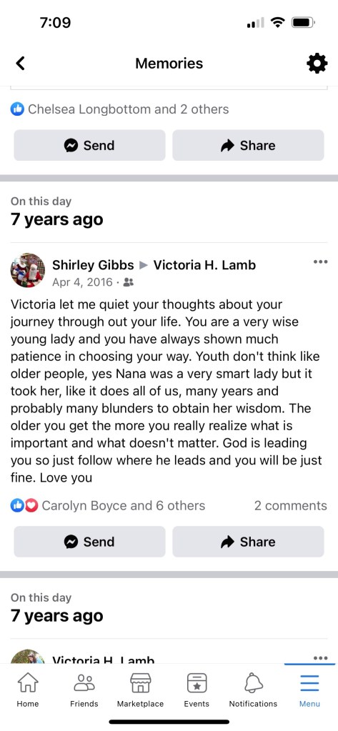 My daughter sent a Facebook post from her Great Aunt Shirley with this wisdom. We miss her.