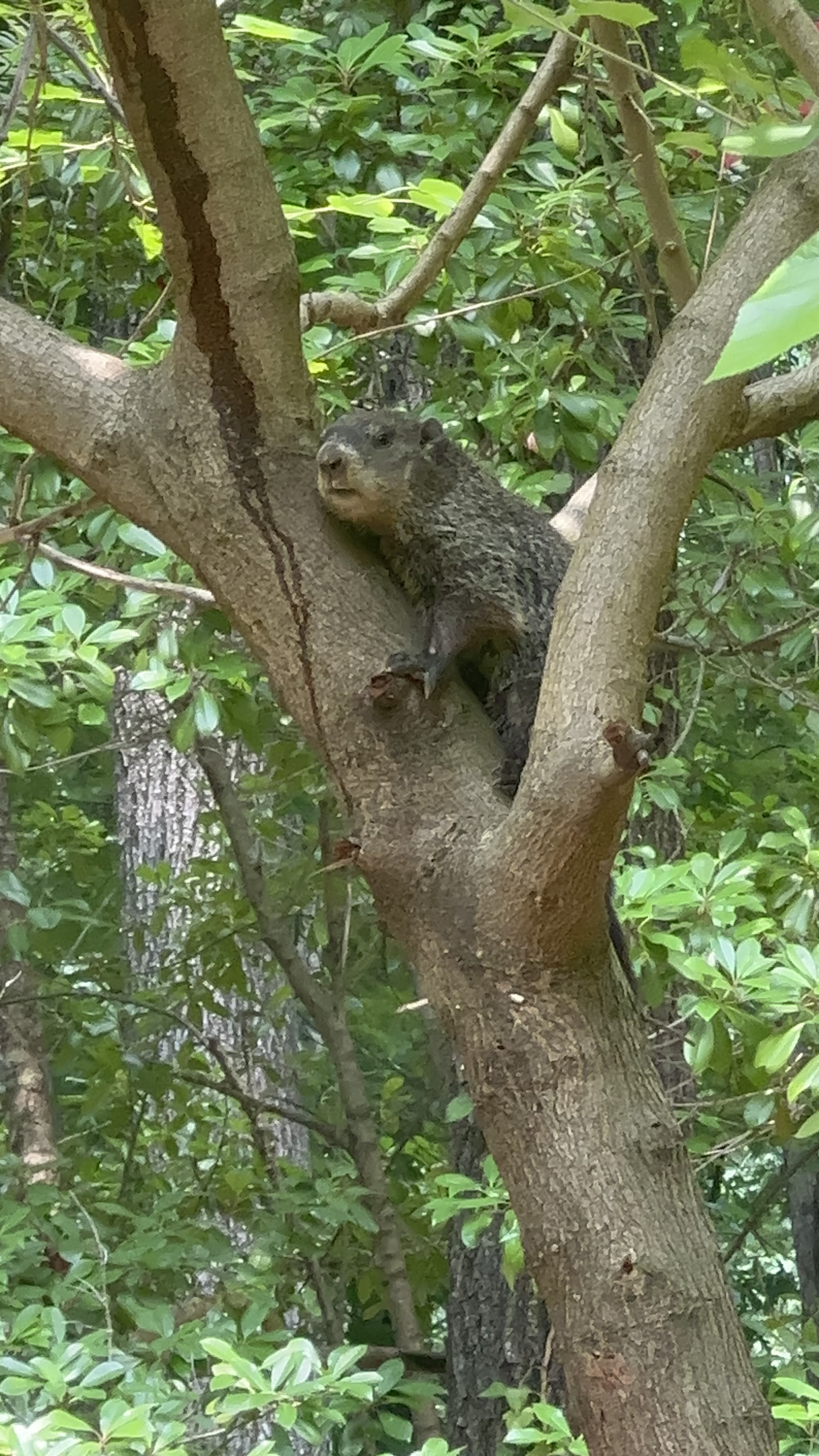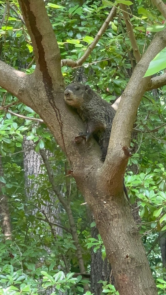 God does have a sense of humor. We’ve been in our home for almost 20 years, and I’ve never seen a groundhog in my tree smiling at me.