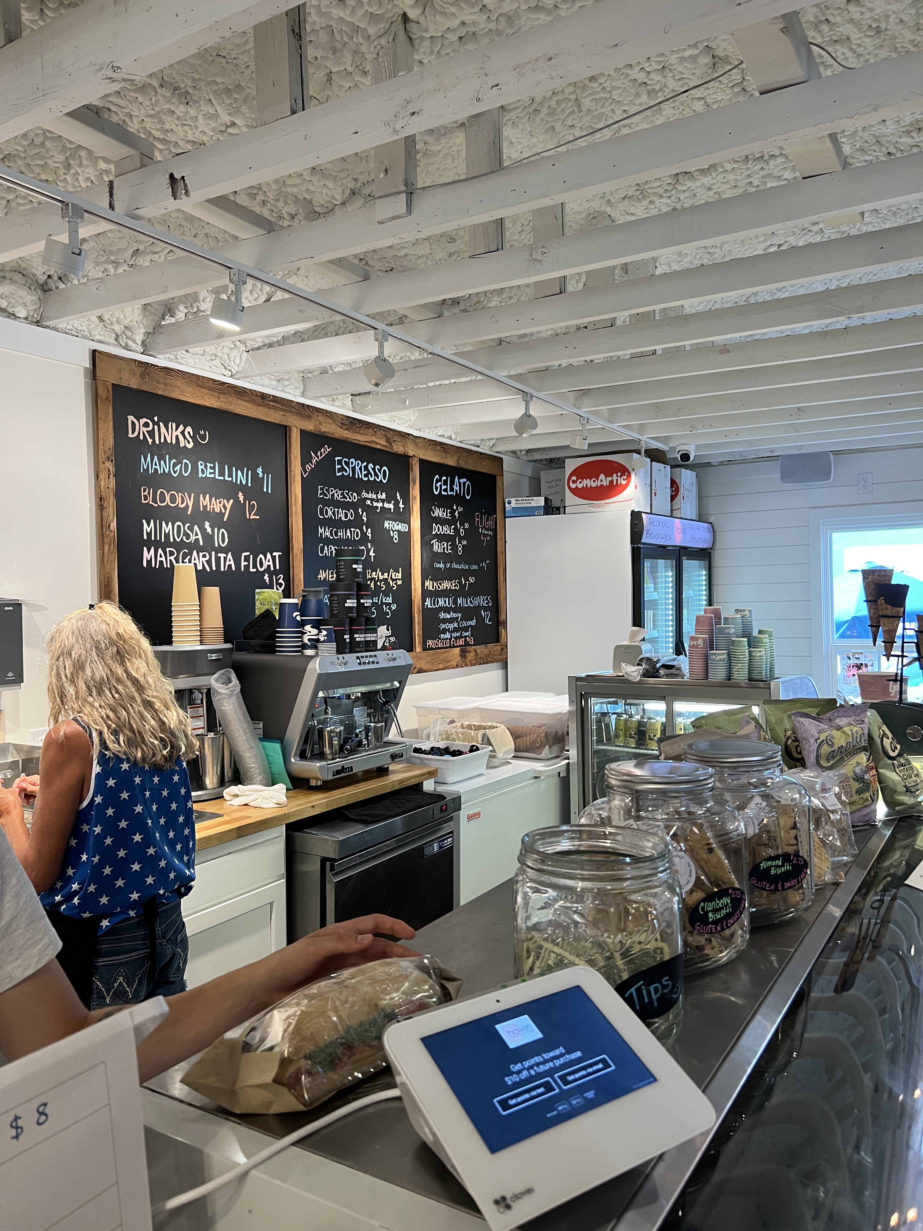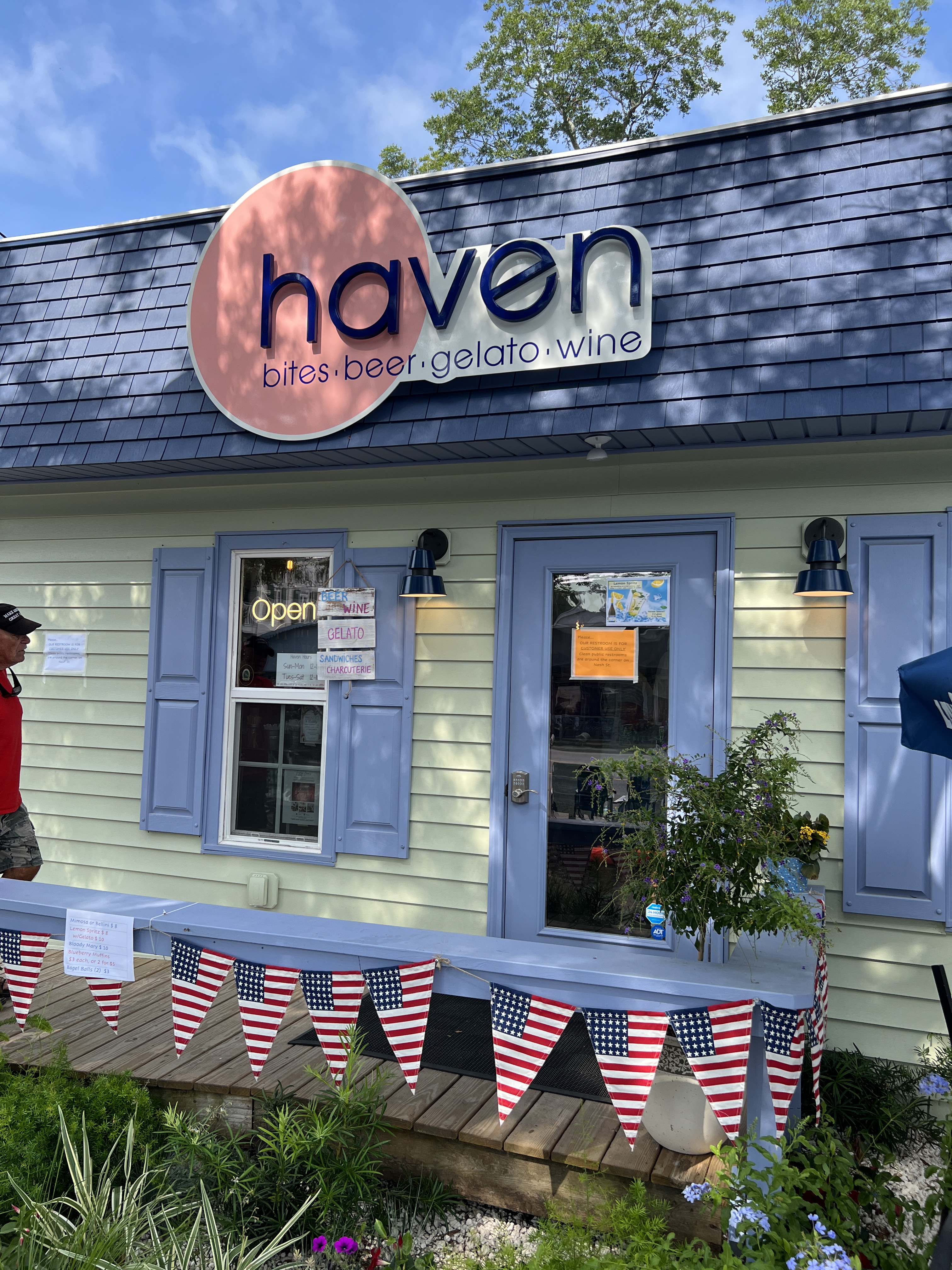 Happy 4th of July! We took Latisha’s advice. We had a lazy morning and showed up to the parade at 10:15. It starts at 11:00. We found the perfect spot under a Yaupon tree that provided shade. The best part was that we also sat in front of the small café and ice cream shop, Haven! What a unique, fun Italian vibe! We got breakfast and some beverages. We met an Italian family, talked about an upcoming trip, and practiced our Italian.