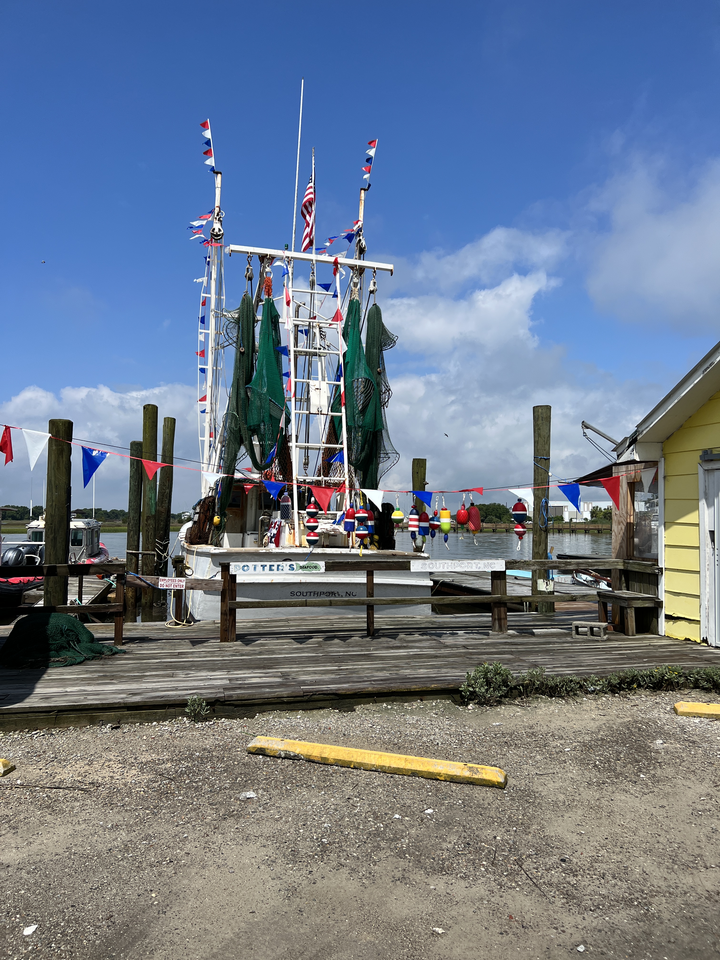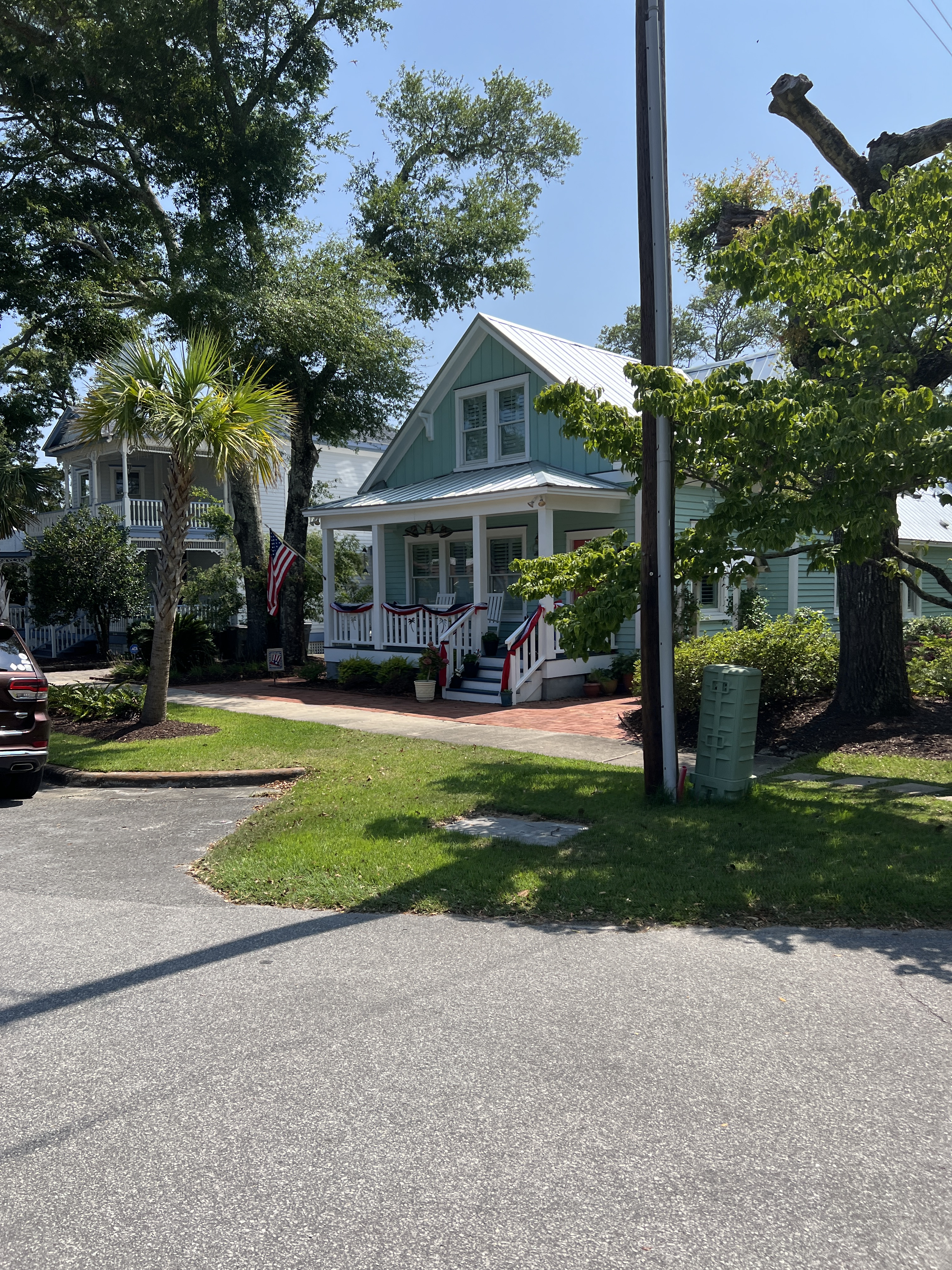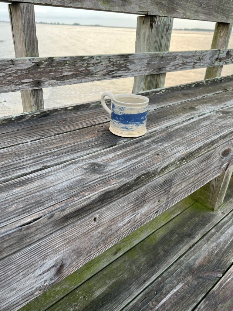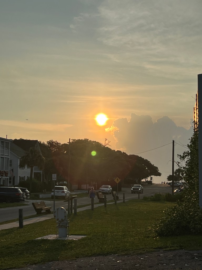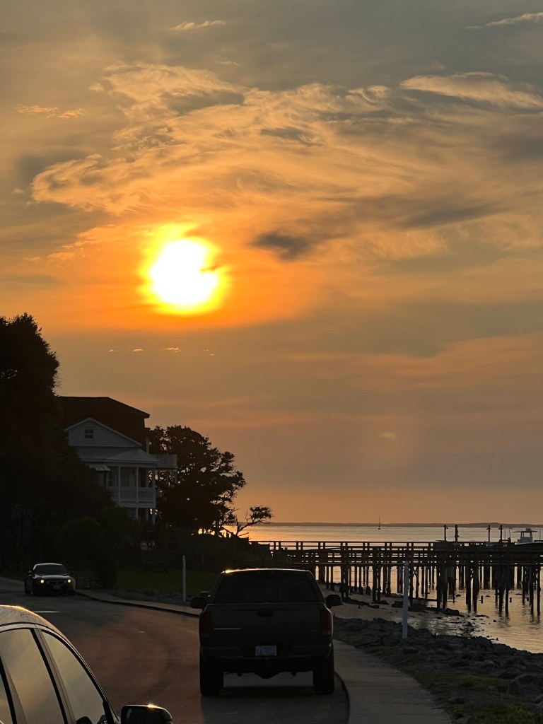 Parish and I bought artisan coffee mugs to use for coffee time. His clay came from the Appalachian Mountains, and his work was influenced by the Colonial style. I got up early that morning to run/walk. What a morning of freedom, fun, and getting to know some folks. I met Latisha, who lived on the main street of Southport. I asked her about all the chairs set up, and she stated that folks are putting up chairs ahead of time to “claim their spot for the parade.”. She also informed me that we did not have to do this. It was a little too much. I laughed. She was cleaning her front porch, and she spoke of Southport fondly, noting that she grew up in Southport and “this was her family home.” “Southport has changed. It used to be like the Town of Mayberry, and now it’s becoming more commercialized.” I said she should write a book. She exclaimed that she was considering it and wanted to write.