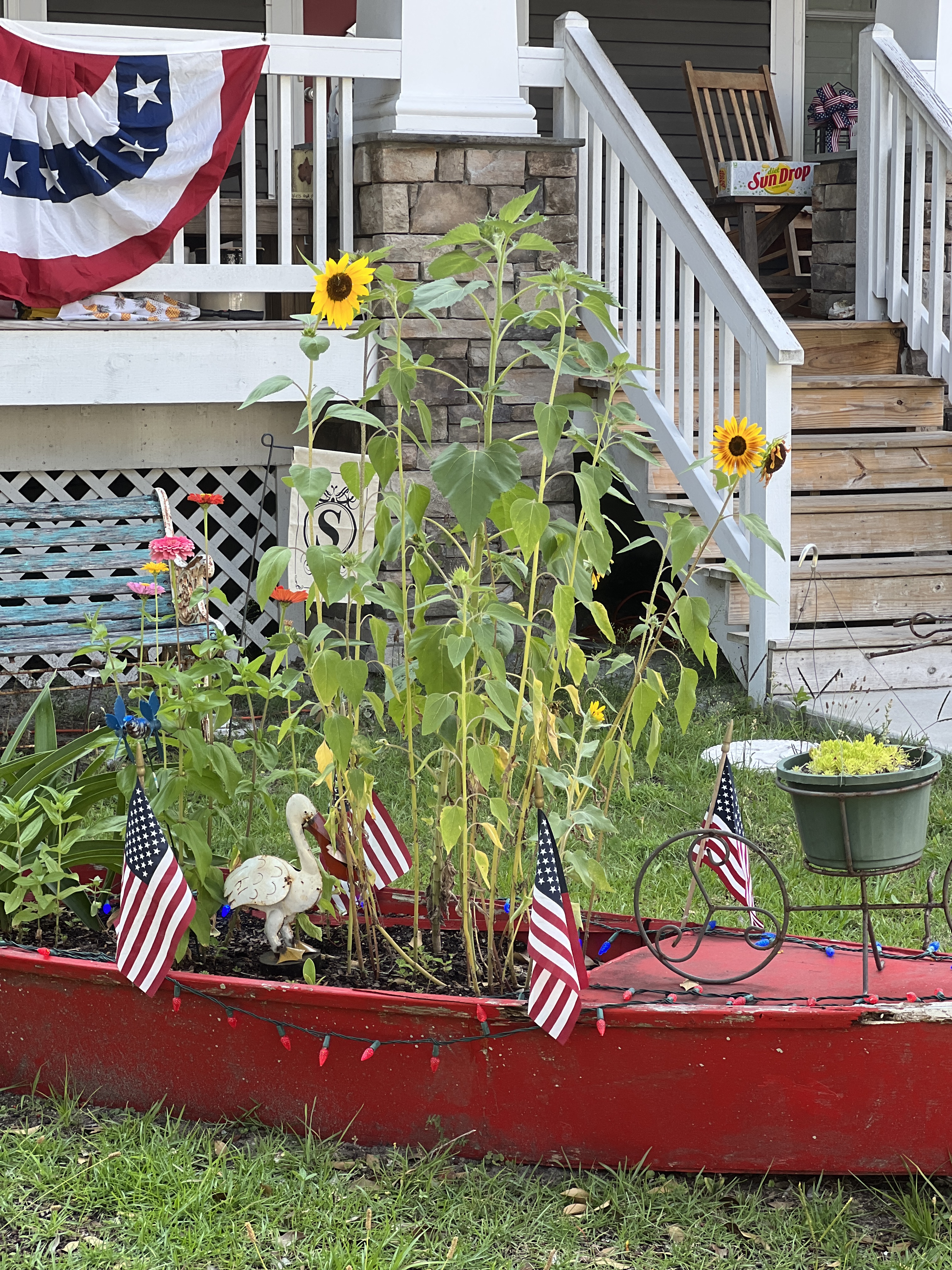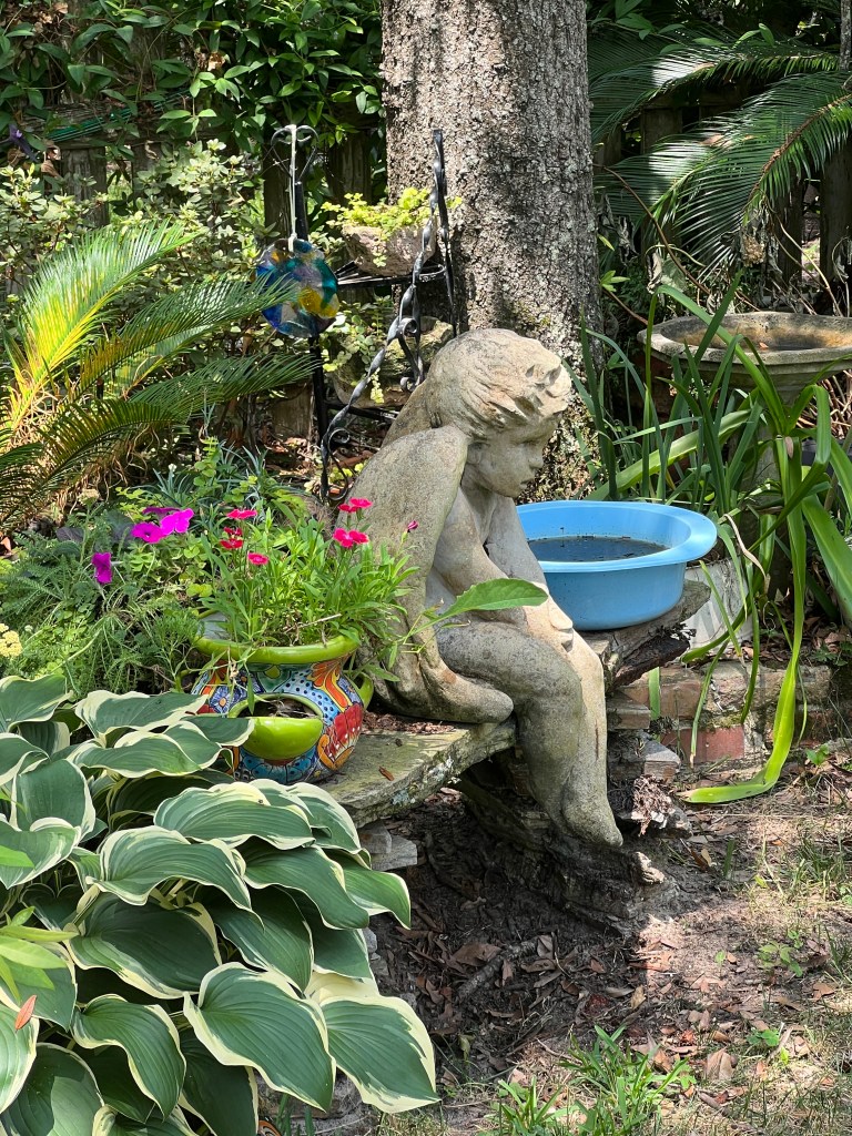 We headed home to put the items away, and then I went to my “spa day.” I had a fantastic massage, foot soak, and reflexology for my feet. The place was called Southport Massage and Foot Retreat. I loved hearing his story about how he started his business after military service and how his family came to settle in Southport. He also shared his 4th of July traditions, which sounded amazing! He also cooks! “A seafood feast with yard games!” It was an all-day event for him, and he invited families to join them. Right beside the massage place is a unique and beautiful garden shop.