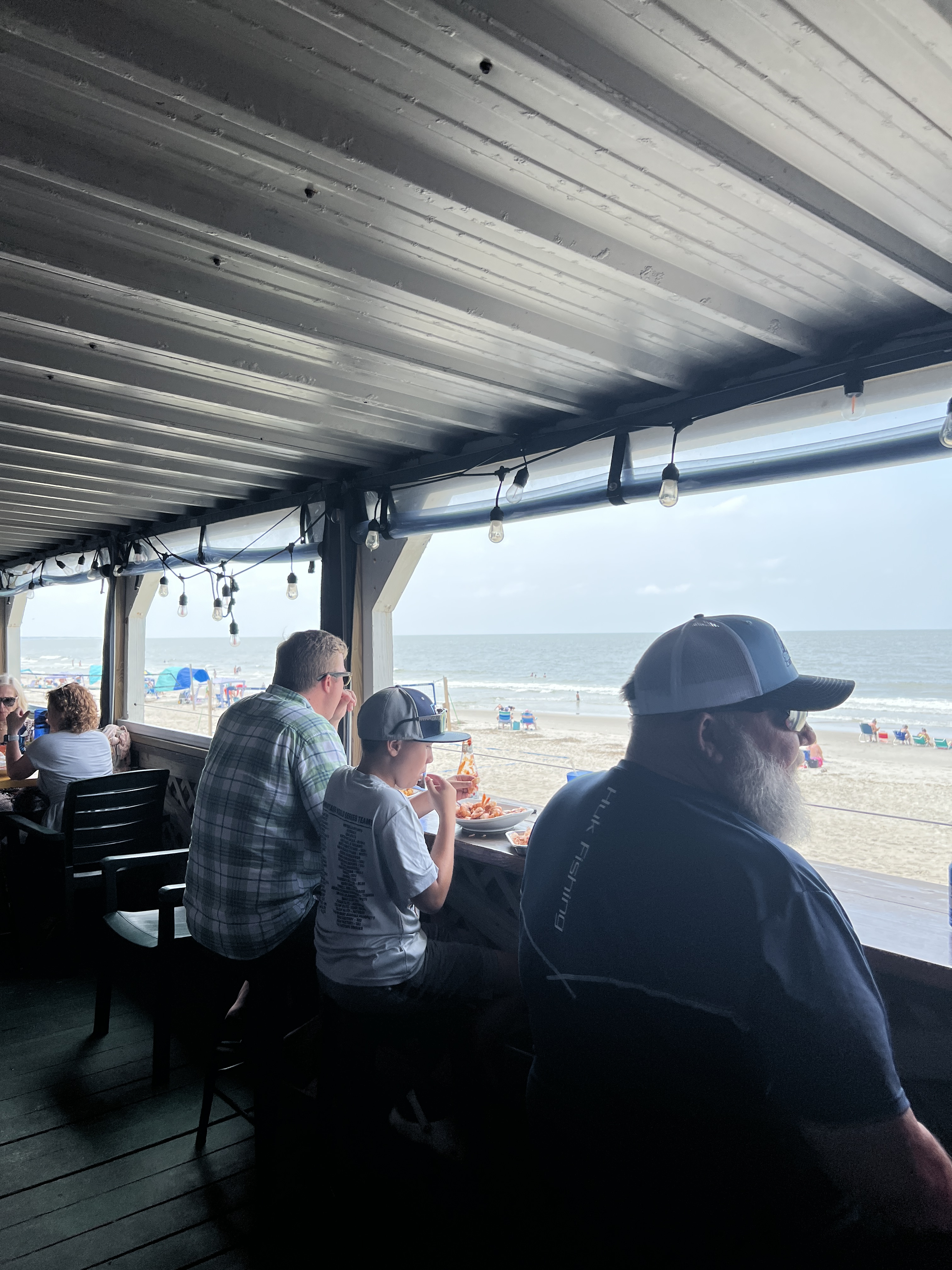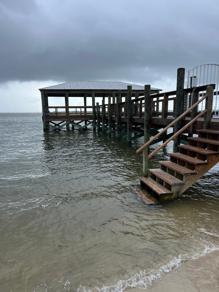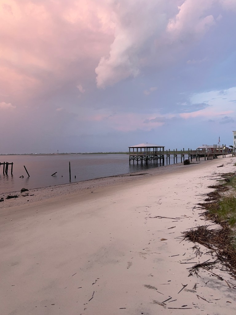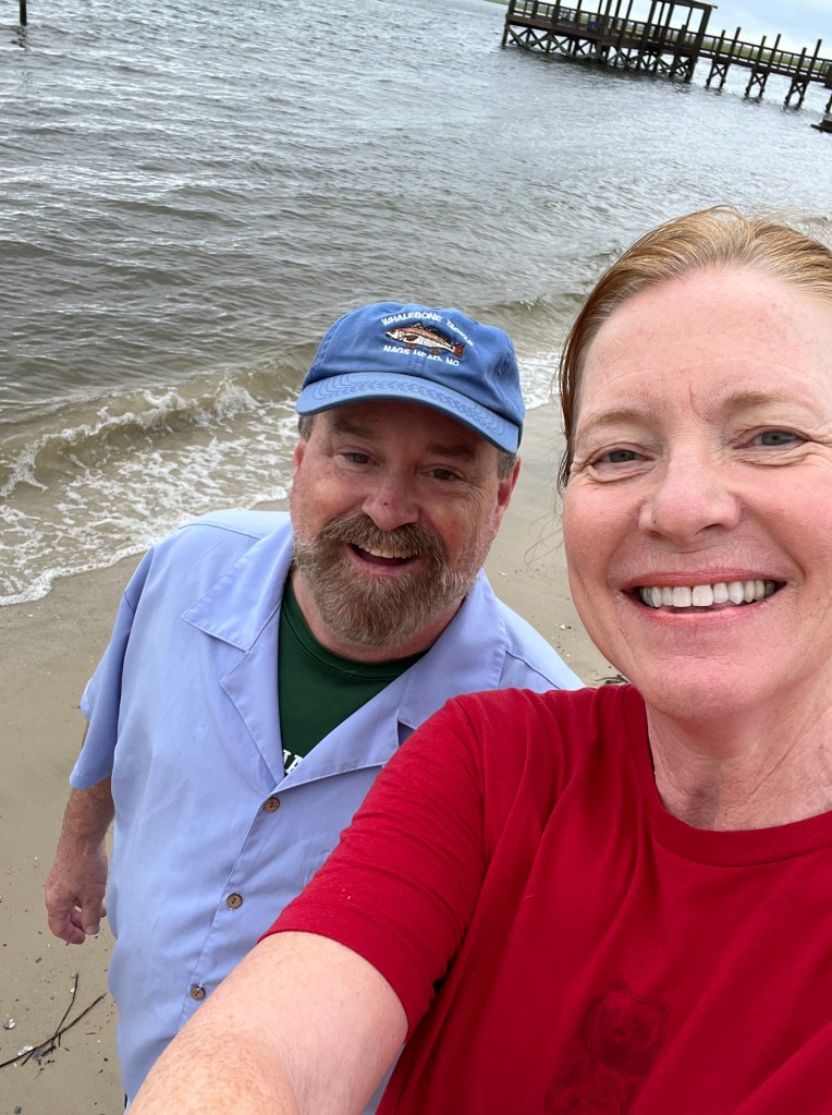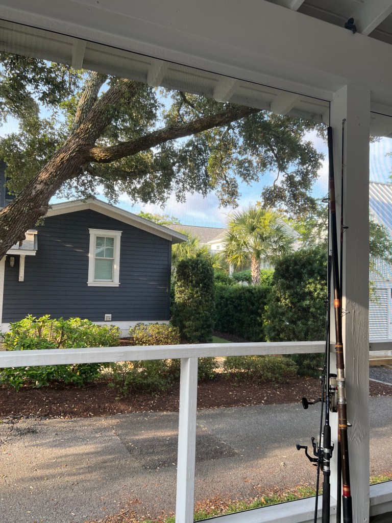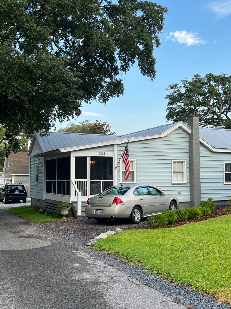 Parish and I woke up, fixed a picnic breakfast, and headed to Oak Island. We parked at Settlers Rd. Beach access. Be ready to pay for parking using your phone and QR code. This proved to be accessible and not too crowded. We stayed for about 1 ½ hours and then headed to a favorite spot called Koko Cabana. We went by the house we stayed at last year.