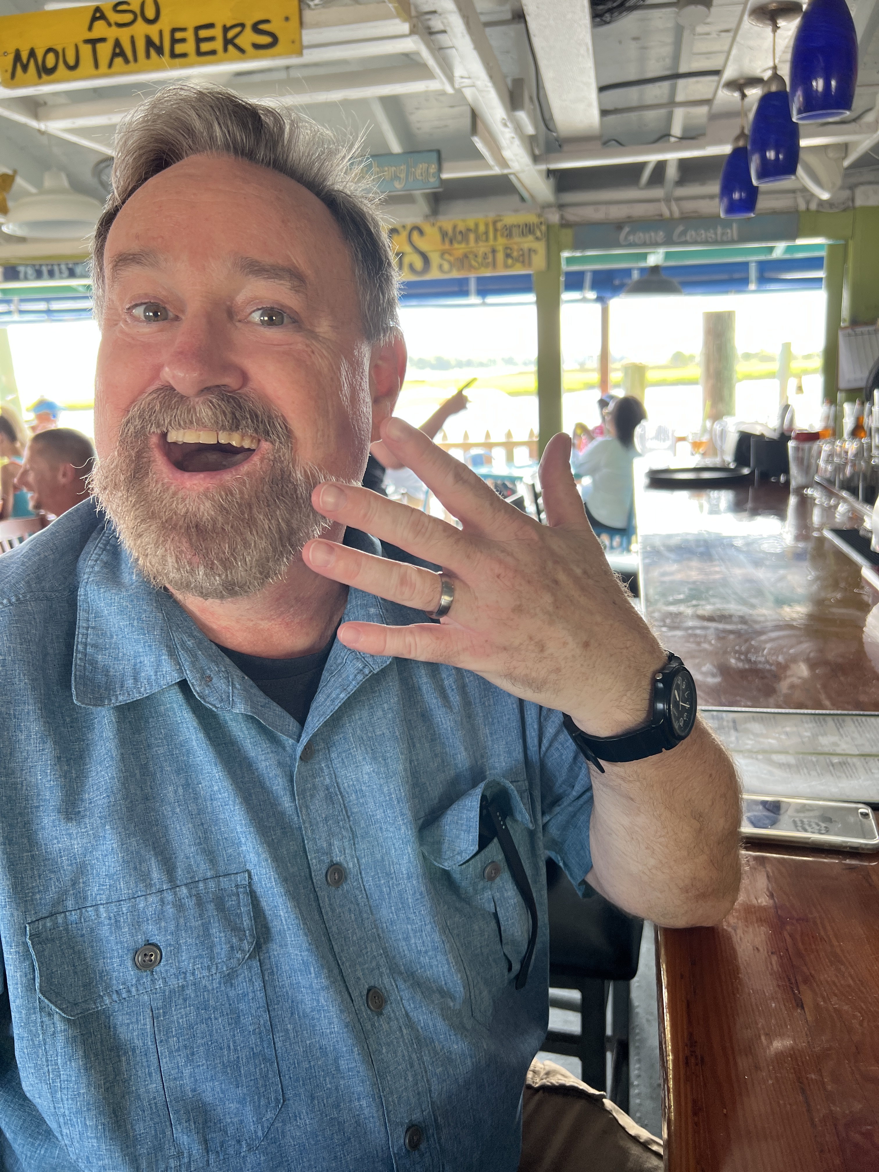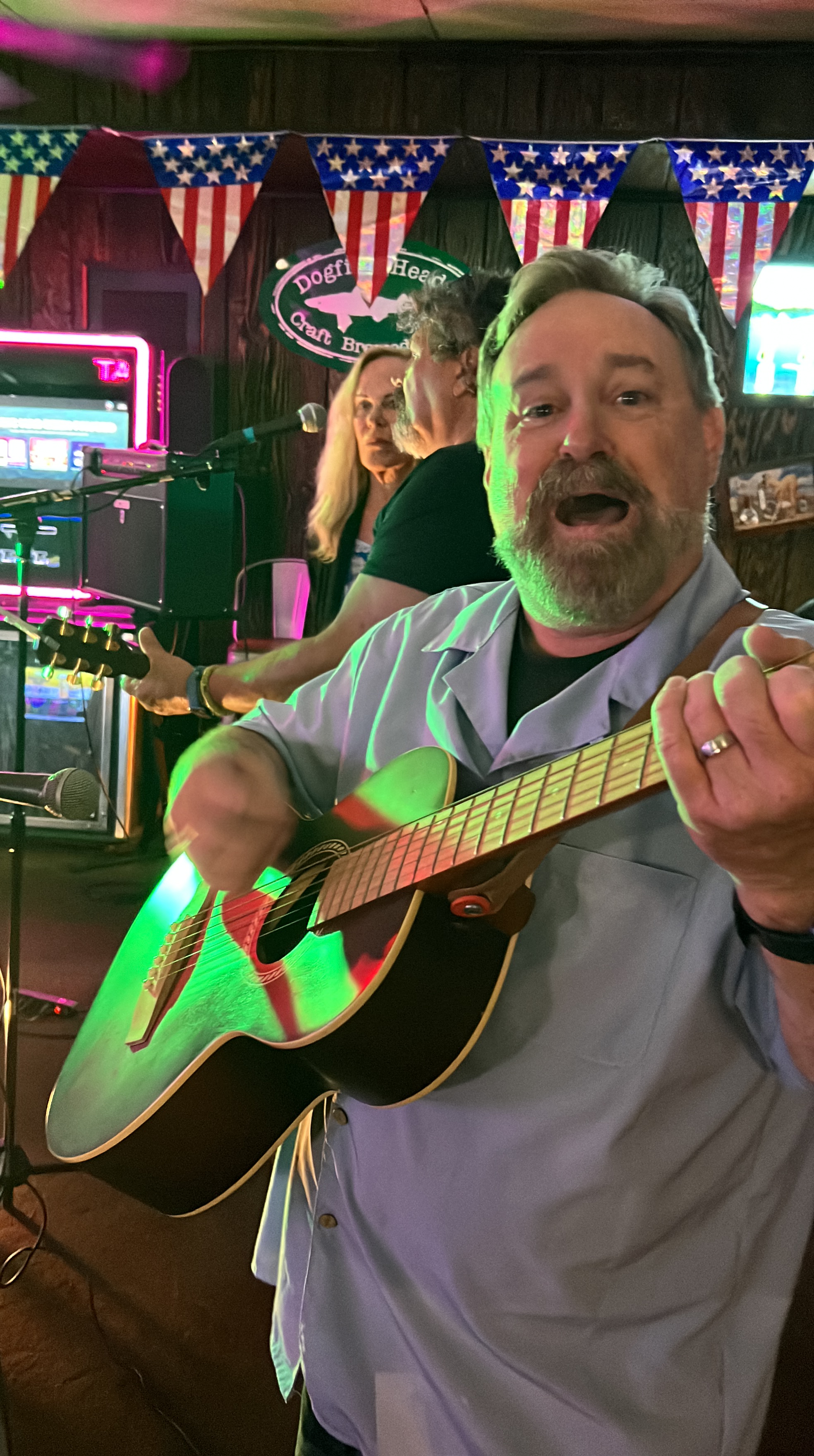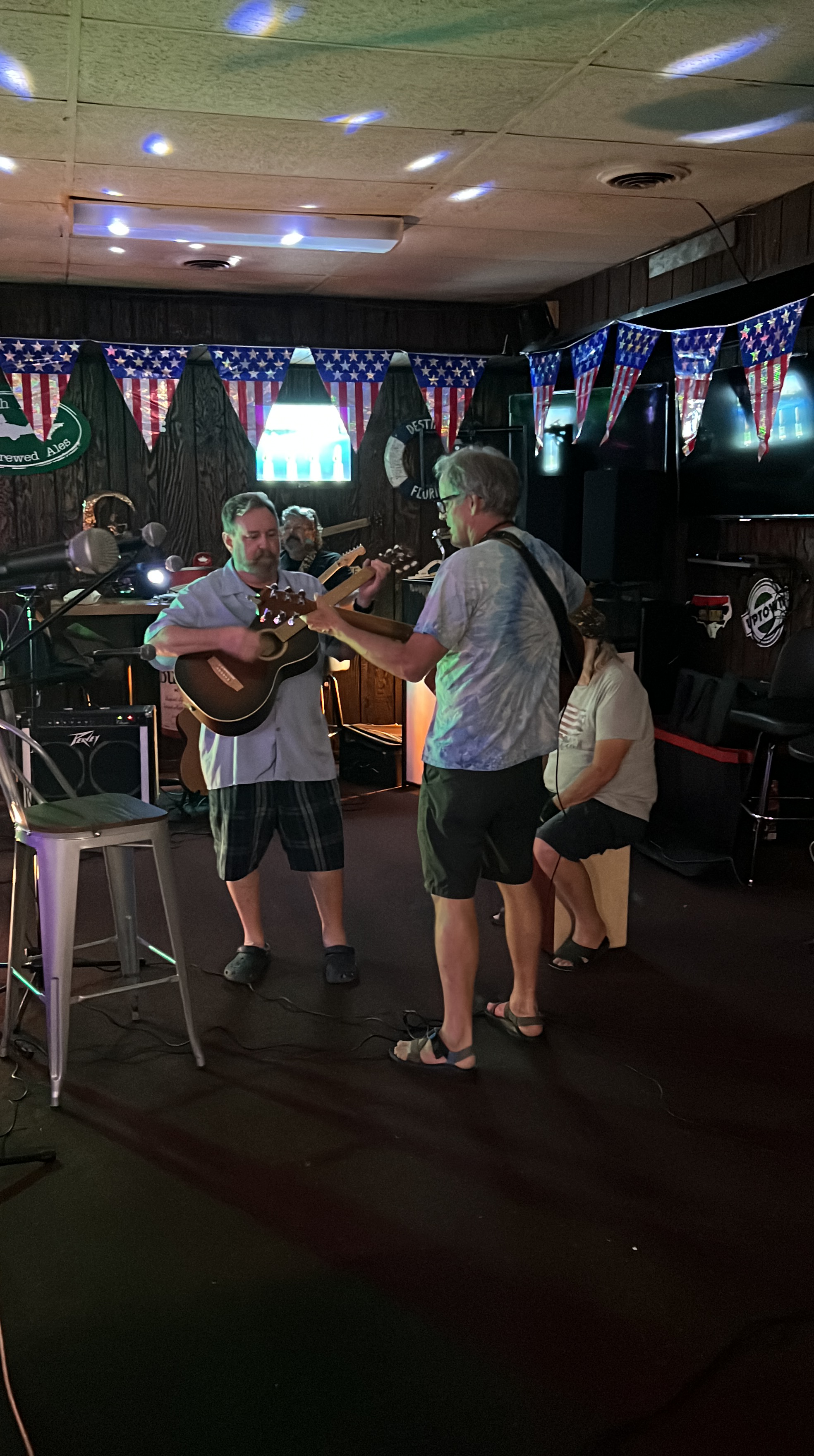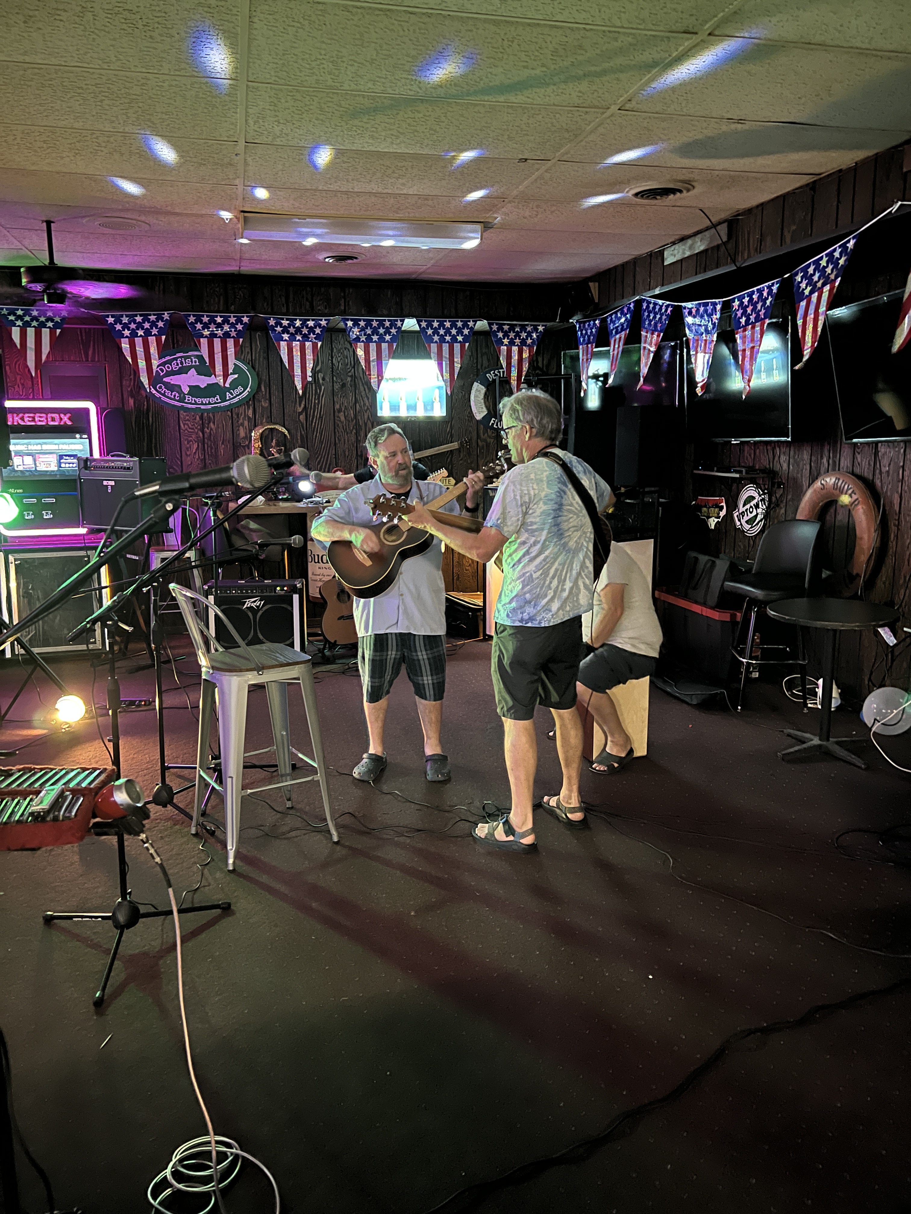 Parish and I then went to the Tiki Tavern for open mic night. There was a band there who invited folks to sing with them, and they would share the mic space! We stayed for about 2 hours. They were the most encouraging and caring folks. They wanted to share the gift of music while also teaching you. One man was on a harmonica transposed into organ sounds with a special mic attachment. We helped him sing the chorus of his song, “Breathe in, Breathe out.” Parish played his guitar.