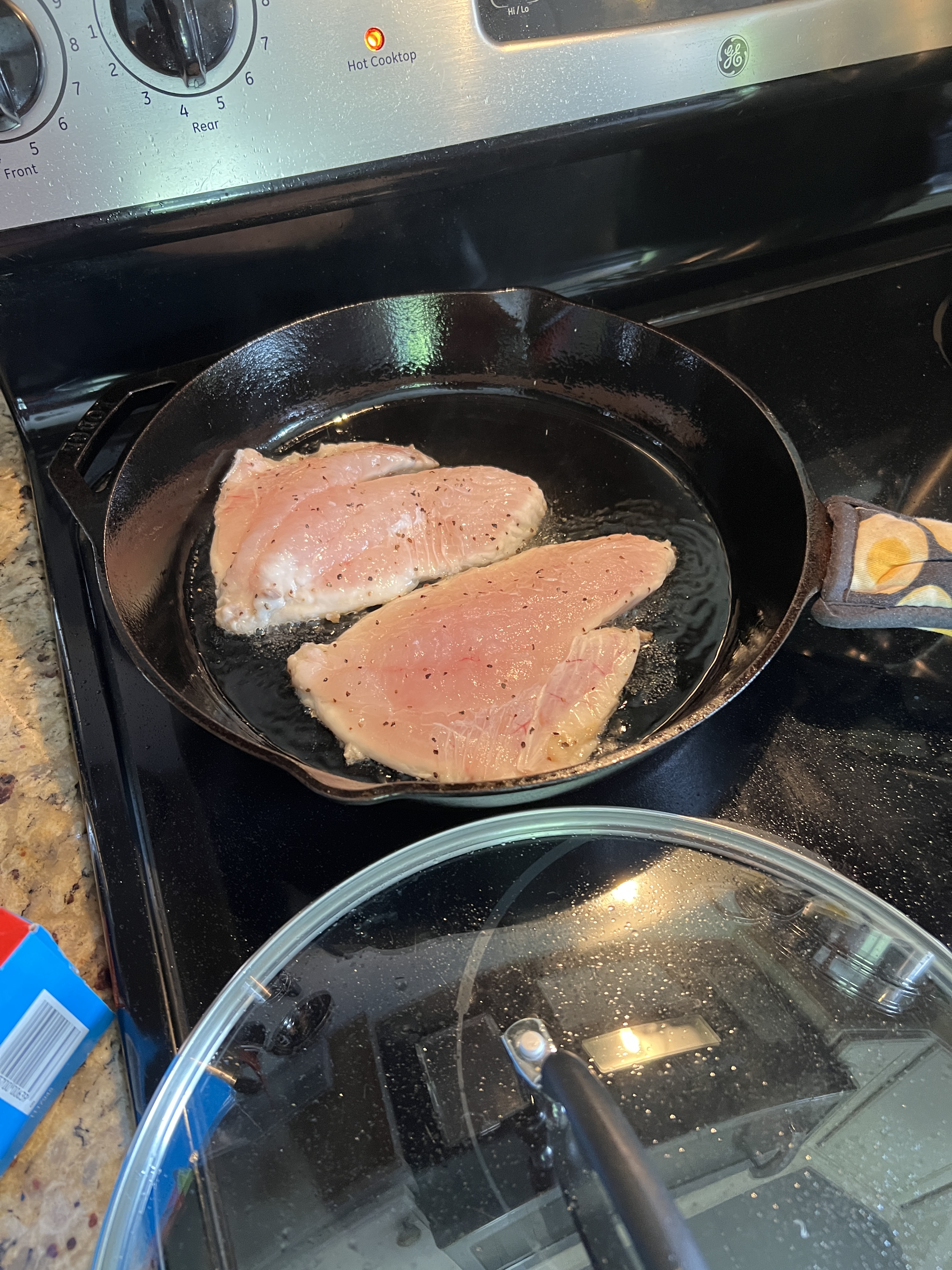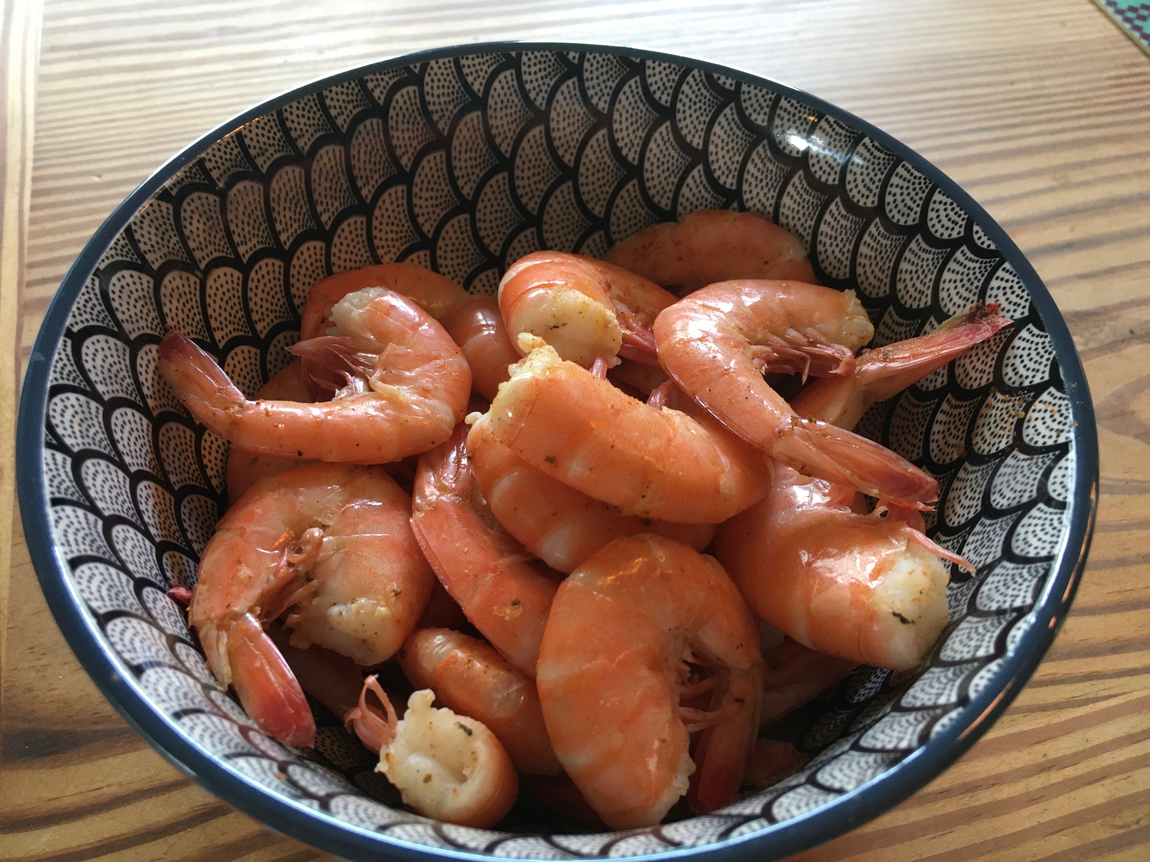 Parish and I went to Potter’s Seafood Market. A family-owned business for over 100 years. We returned and made a lovely brunch with triggerfish, which is high in protein and amino acids. This fish is mild and solid. We also had shrimp.