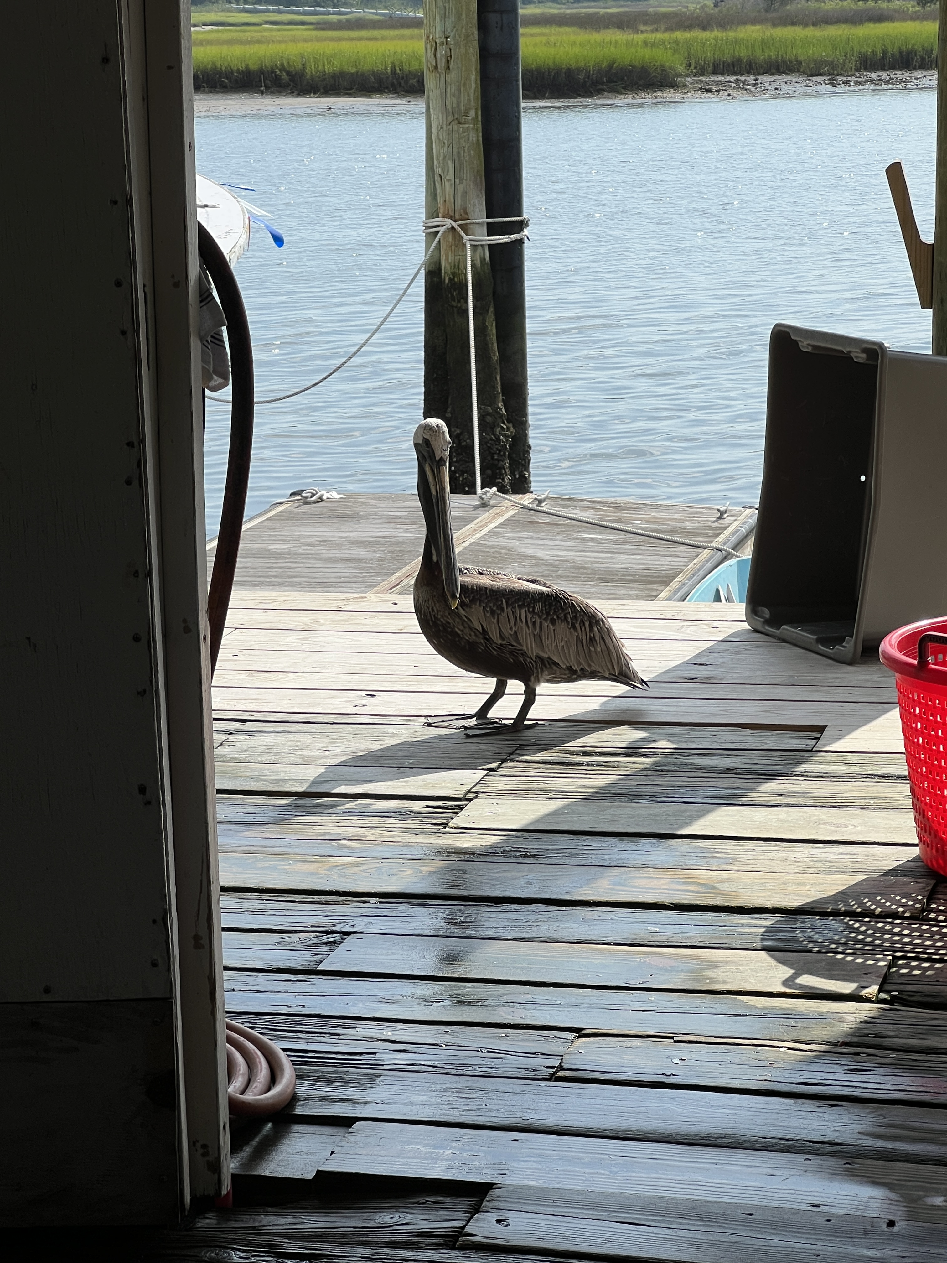 Valentina and I walked around the shops and picked up my crab meat at Potters. We discovered that Potters support Pelican rescue, and we met one of their friends, Betty. Many fly as far as Key West and then return in the summer to Southport.