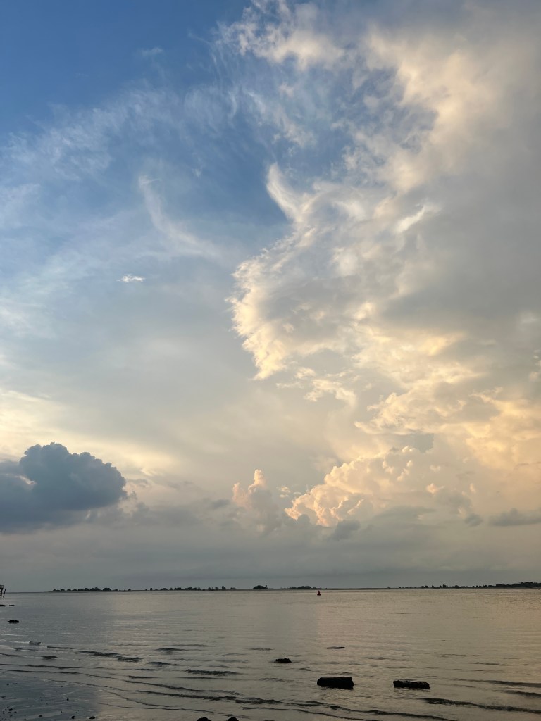 Went for a walk this morning and found a few unique shells. Ever since I was a little girl, I would try to find heart-shaped rocks and shells. That was a treasure to me. I remember taking a walk with my mom at a campground; it was pitch black and dark outside, but I looked down at my feet and could see the heart-shaped rock. That was a good memory with her. As I was walking on the beach today, I found not only a heart-shaped shell but also a heart sticker, probably from a little child’s artwork or playful time at the beach. That meant the world to me.