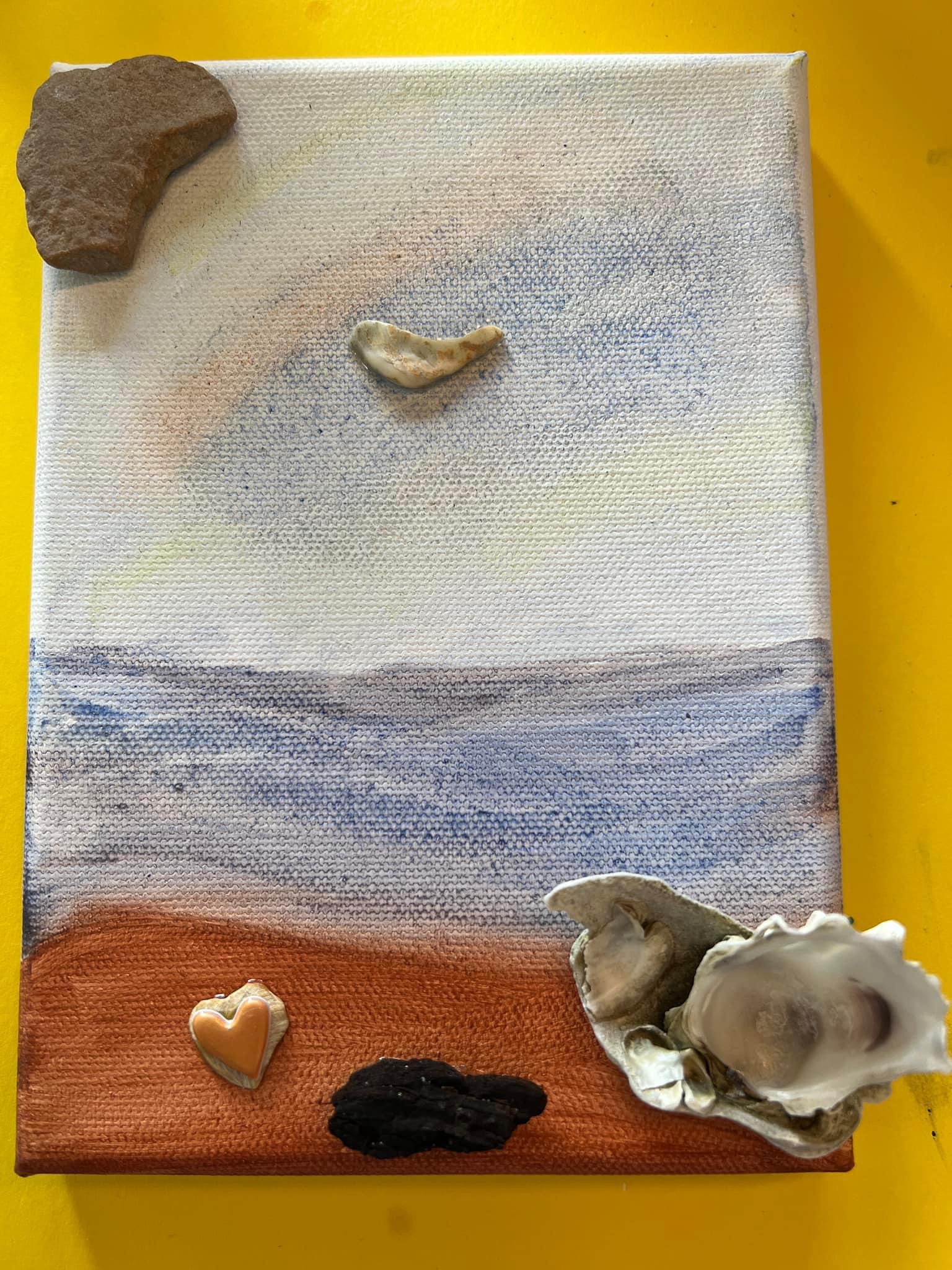 We came home to Valentina and Drake making canvas art with shells. Later that week, I was inspired to do the same with the shells I found on one of my early morning walks!