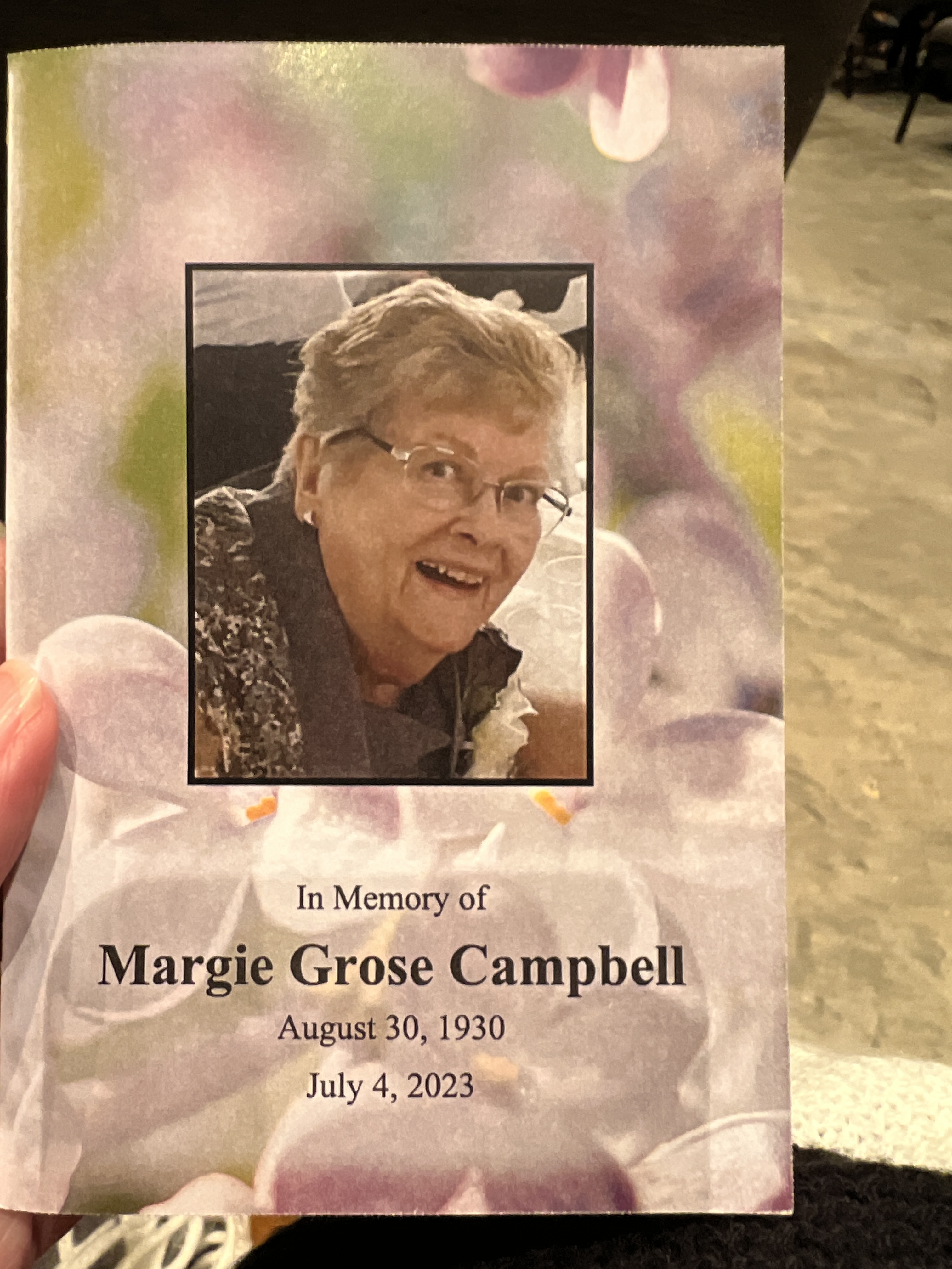 My mom asked me to share the name of the person who had passed away. I took a picture of the program and sent it to her. I decided to post the program here to remember her. To give honor to her. I smiled. Another example of a life lived on purpose and with belief.