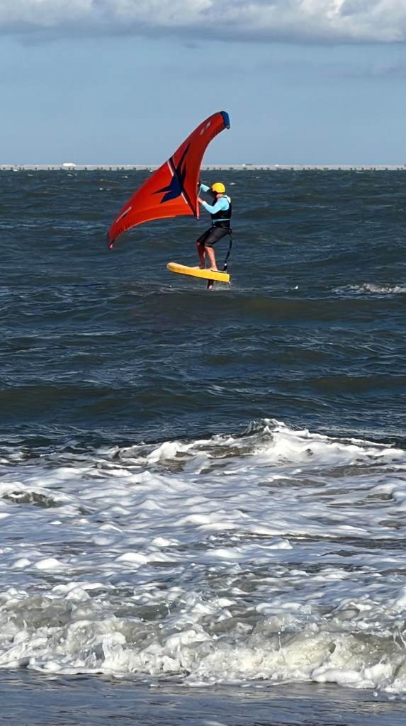 After cleaning up, we went to the beach for the afternoon! A great time playing in the sand and the sun. Parish and I enjoyed time on Friday at the beach and were able to watch kite surfing. It was an exceptionally windy day and prime weather for the sport. We could see the air show from the beach! Check out Alfred Hitchcock’s “smoke.”